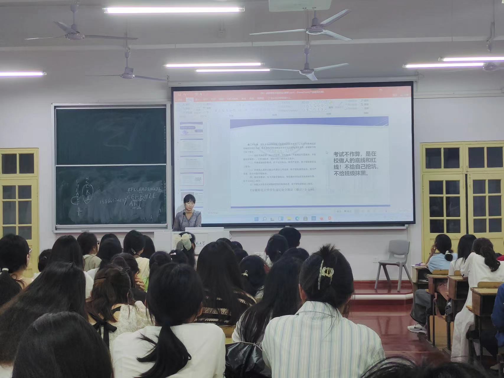 为塑造员工诚实守信的人格,按时偿还国家助学贷款,形成知恩感恩的崇尚之风。为全面贯彻公司有关考风考纪教育的要求,端正考试态度,杜绝考试作弊现象的发生,为广大同学营造公平的竞争环境。6月2日,2021级生物科学专业于教学楼1401教室召开了以“以诚为本,以信立人”为主题班会。2021级生物科学专业全体同学参会,会议由辅导员周文娟主持。