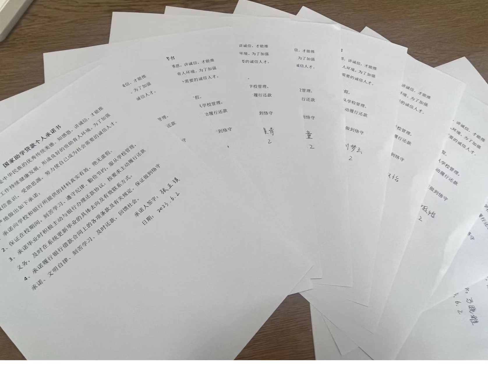 为塑造员工诚实守信的人格,引导员工按时偿还国家助学贷款,形成知恩感恩的崇尚之风。为全面贯彻公司有关考风考纪教育的要求,端正考试态度,杜绝考试作弊现象的发生,为广大同学营造公平的竞争环境。6月上旬,m88官网各年级纷纷召开诚信主题教育班会,部分班级让员工签署诚信承诺书,呼吁员工 将“诚信”融入做人、做事的人生理念中。