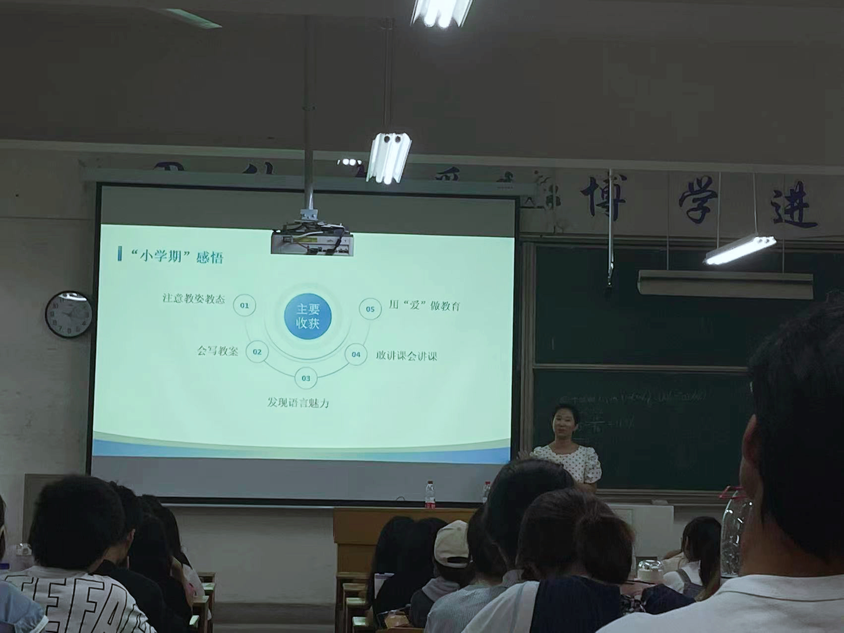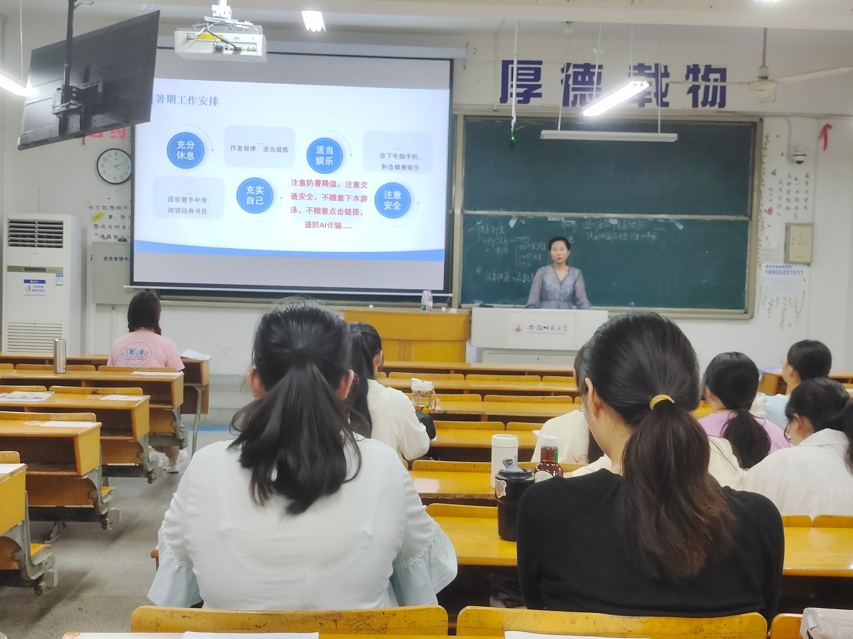 周文娟分享自己的小学期感悟,她提到,师范生们在教资教态、教学设计、课堂把握等多个方面有所成长,在语言表达上有所突破和提升。紧接着,她强调,小学期不仅让同学们发展培养了师范生技能,一线中学名师更为师范生们展现了名师风采。接着,周文娟就暑期具体工作的安排作了详细讲解,强调安全问题,做到暑期去向及时登记汇报。