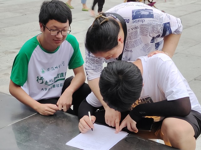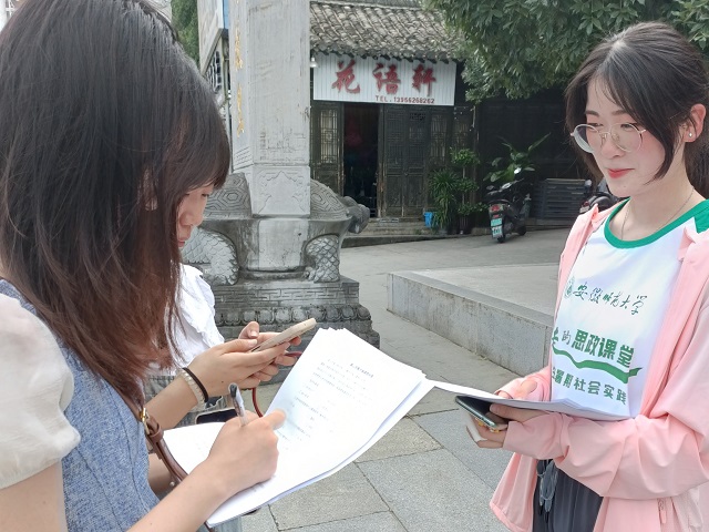为了解广大市民对菊花的了解程度以及对贡菊米酒的接受程度,6月29日上午8点,安徽师范老员工命科学公司校级重点团队“赴歙县贡菊综合应用研究本科生社会实践”团队于徽州古城开展贡菊市场问卷调查。