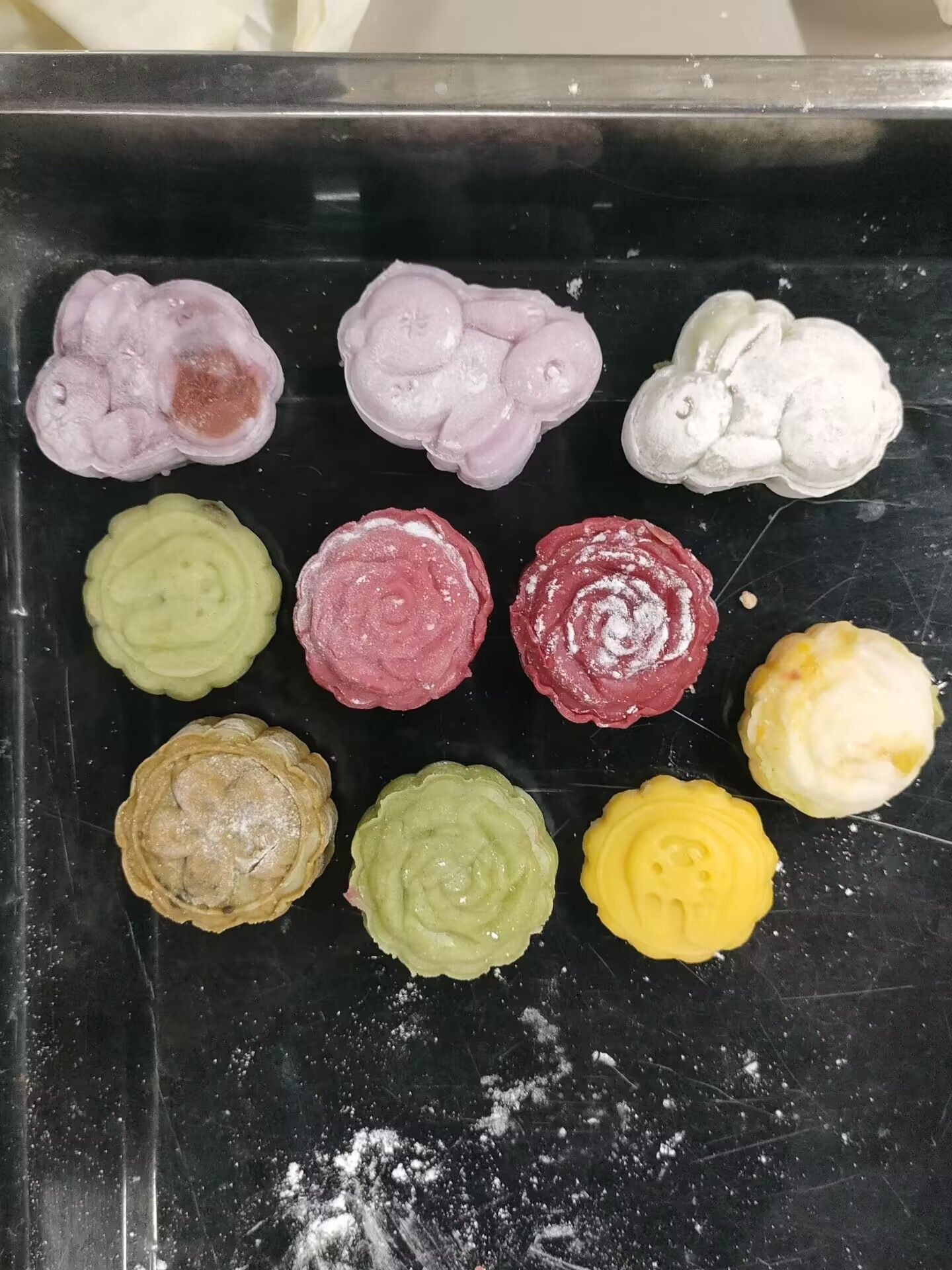 活动开始前,团支委准备了各种制作月饼所需材料,包括各种风味的月饼馅料、面粉、月饼模具等。大家早早地来到活动场地,兴致勃勃地开始准备。同学们首先了解了冰皮月饼的基本制作步骤,然后开始分组制作。有的负责将冰皮粉加水搓成面团,有的负责将面团分成适当的大小并包入各种馅料,有的负责将月饼放入模具印花。大家互相学习、互相帮助,现场气氛热烈而和谐。经过一番努力后,一块块象征着团圆和美满的月饼新鲜出炉。同学们看着自己的劳动成果,满满的喜悦和自豪感油然而生。月饼不仅外形美观,而且口感极佳,有豆沙、草莓、蔓越莓等多种口味,让人回味无穷。