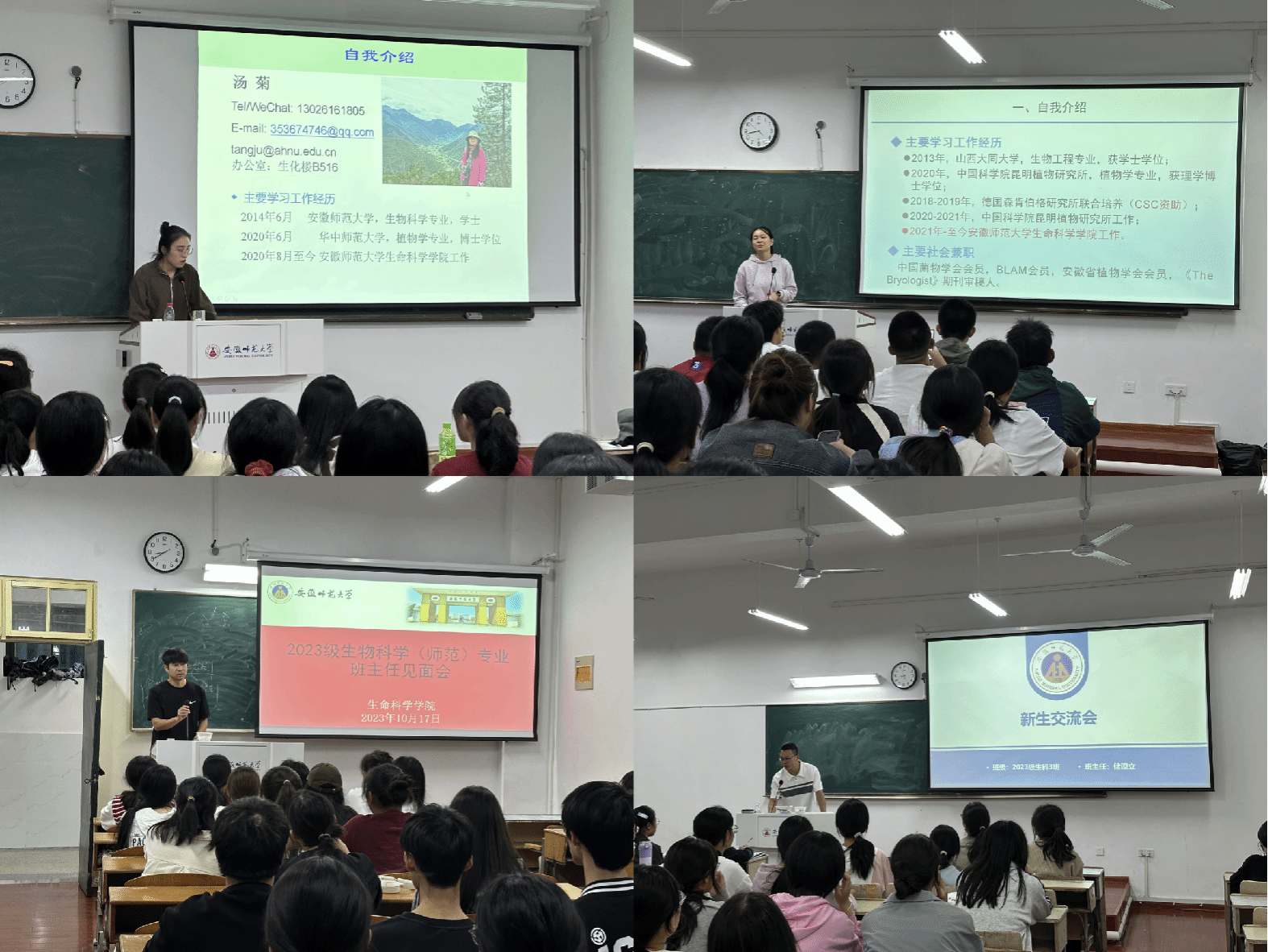 本网讯(生科院 王灿红 张笑语)为帮助同学们更好的适应老员工活,加深对专业的了解,明晰未来规划,10月17日晚,2023级生物科学(师范)专业各班级开展班主任见面会,班主任汤菊、张雁云、王程亮、储谟立老师主讲,见面会由各班级班长主持。