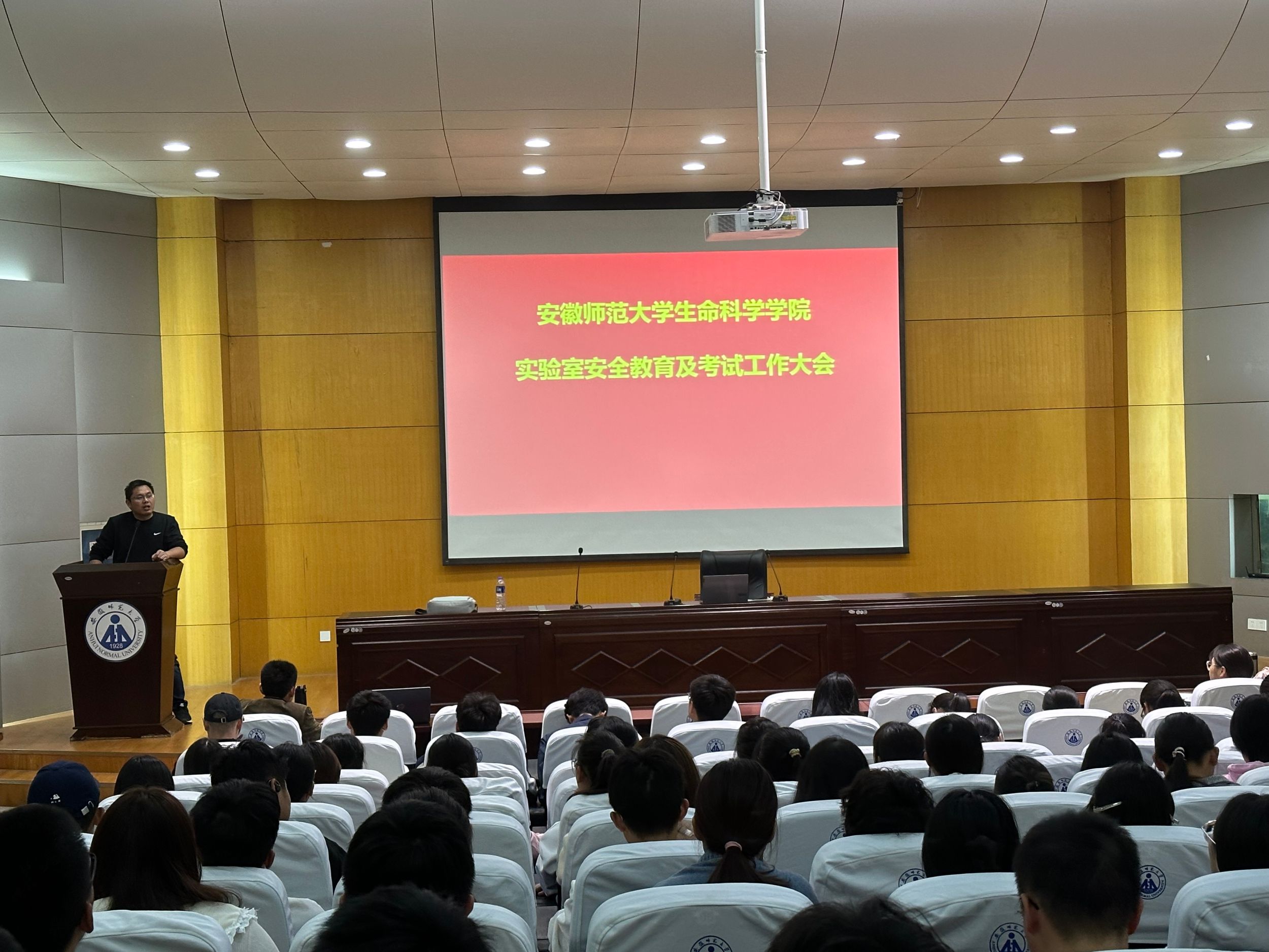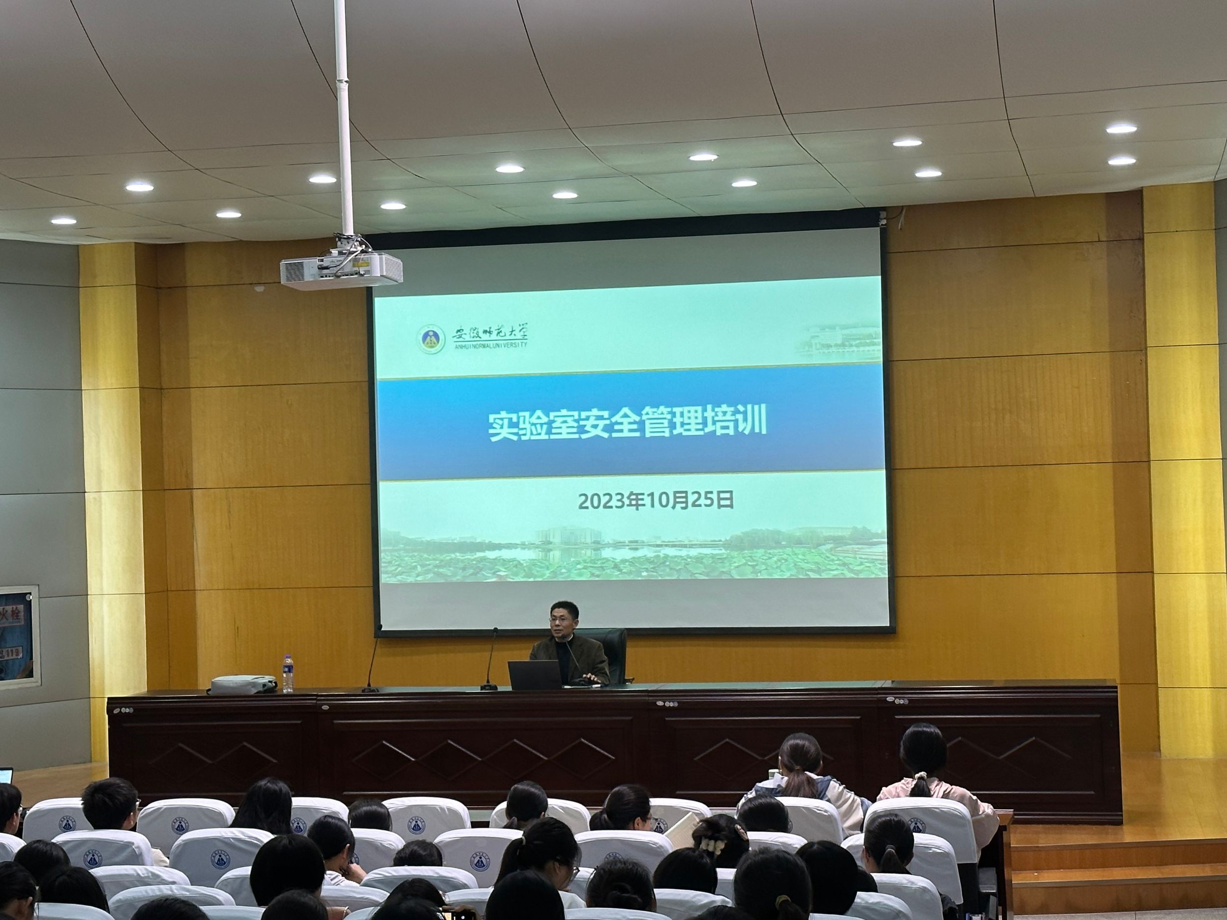 10月25日下午,2023级生物科学专业全体同学参加公司组织的危化品管理、实验室安全专题教育培训会。培训会在田楼报告厅举行。会议由公司实验中心主任曹正宇主持,公司行政副经理王立龙参会并做指导。