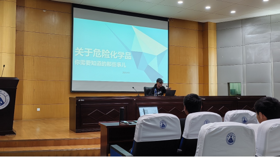吕国胜老师介绍了危险化学品的定义、分类、进入人体的途径以及危害;他指出,要关注危化品安全说明书(MSDS),掌握事故发生前后的急救措施、消防措施及个体防护措施。