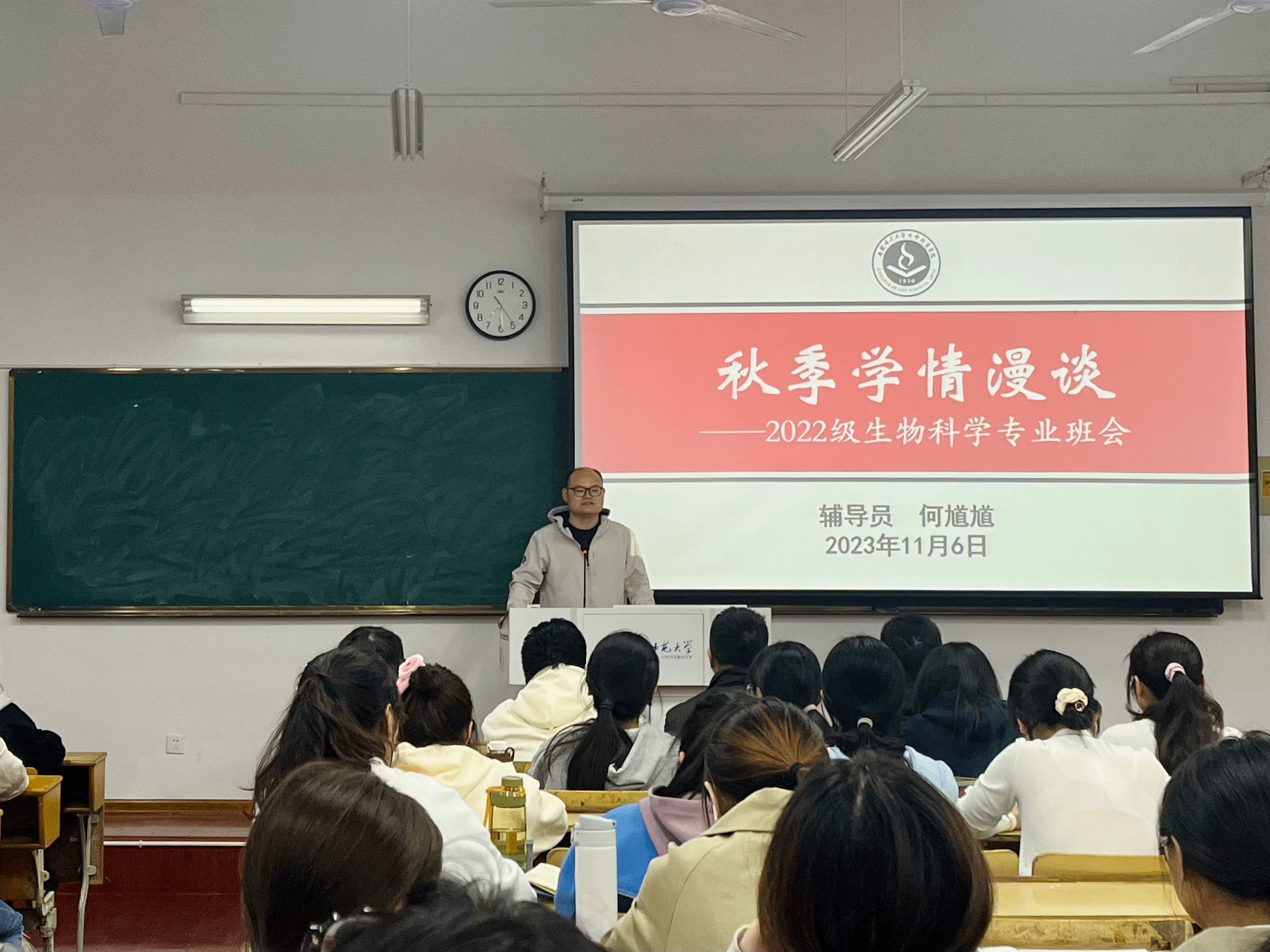 11月6日-7日,m88官网2022级生物科学专业分班级召开“秋季学情漫谈”主题班会,班主任王苏盆、高轩、罗林杰、姜斌与辅导员何馗馗围绕员工成长成才困惑一起作指导、给方向、寻路径,让“课程思政”牵手“日常思政”,实现同向发力、双驱育人。