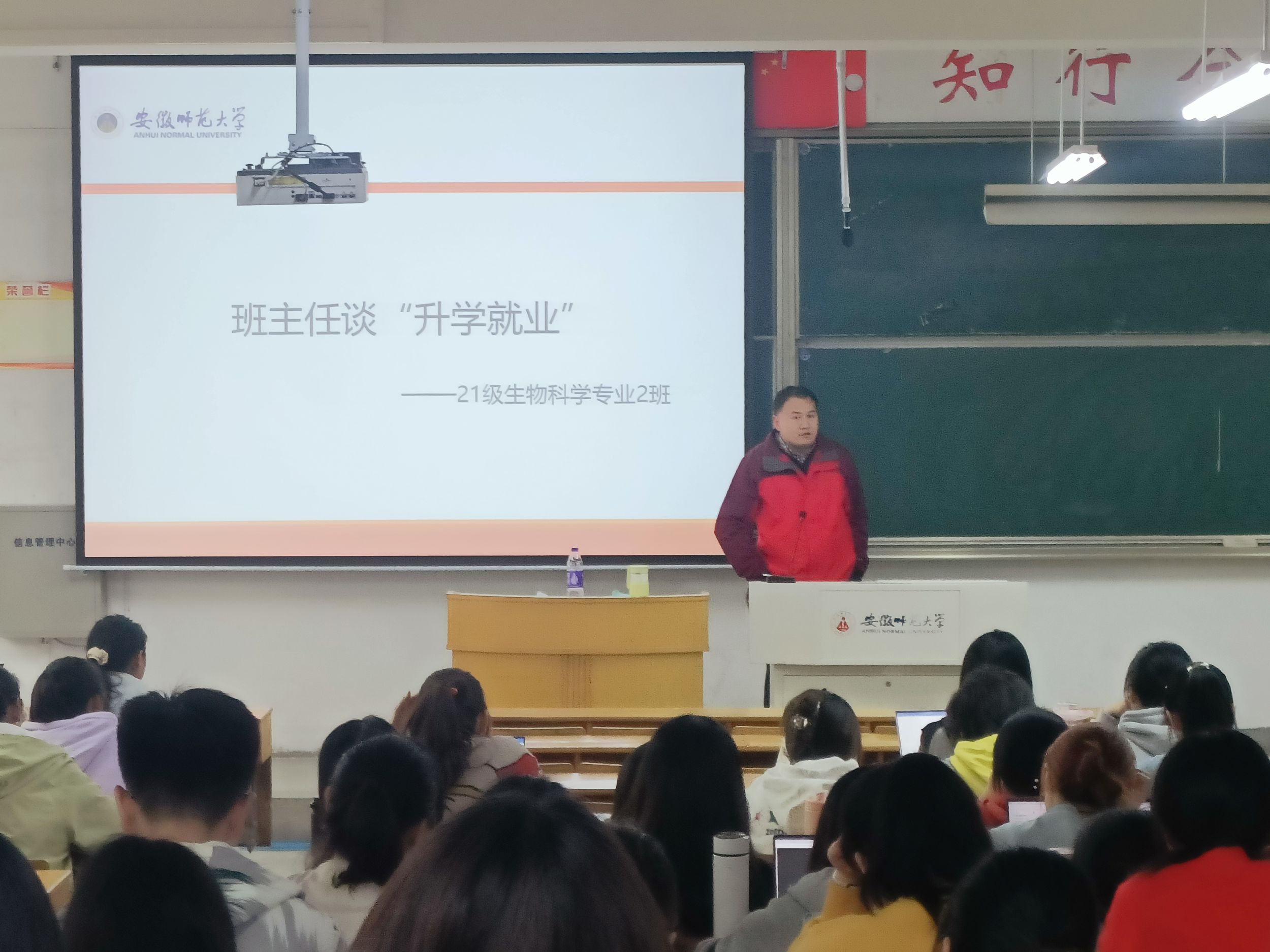 11月9日下午,辅导员周文娟21级生科2班班主任孙洋老师对大三员工关心的考研和就业等热点话题进行讨论。