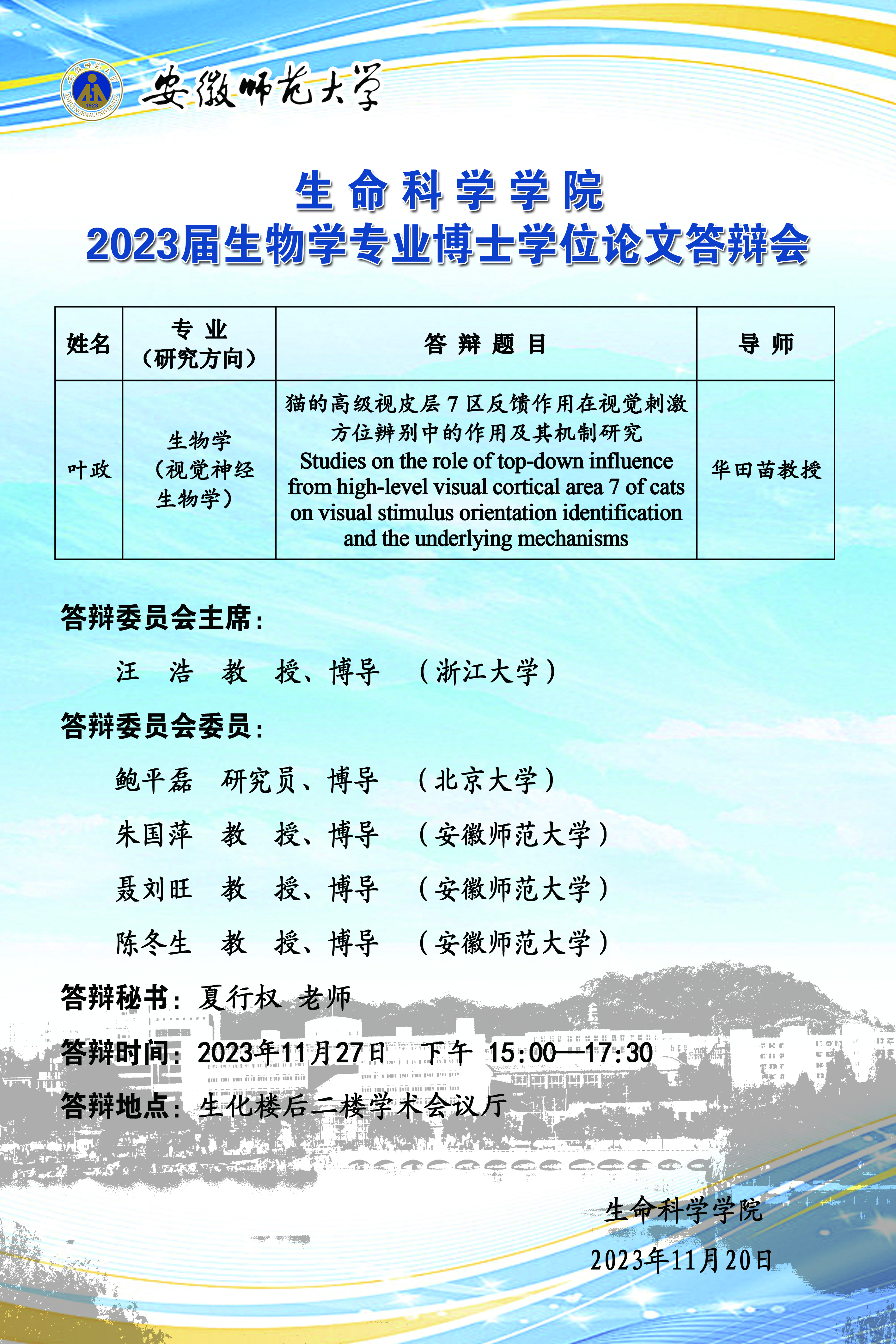 m88官网2023届生物学专业博士研究生学位论文答辩会(三)