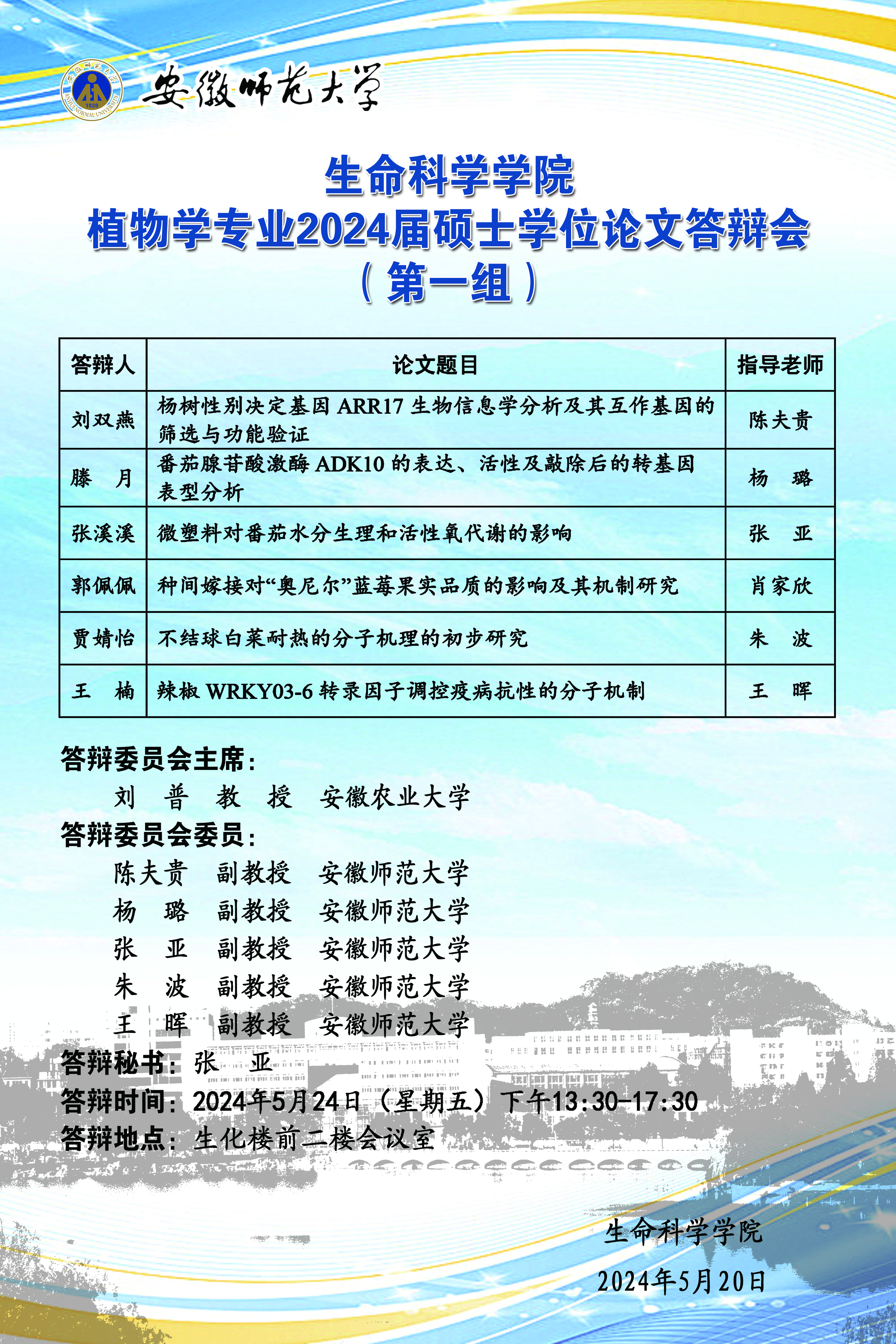 m88官网2024届植物学专业硕士研究生学位论文答辩会