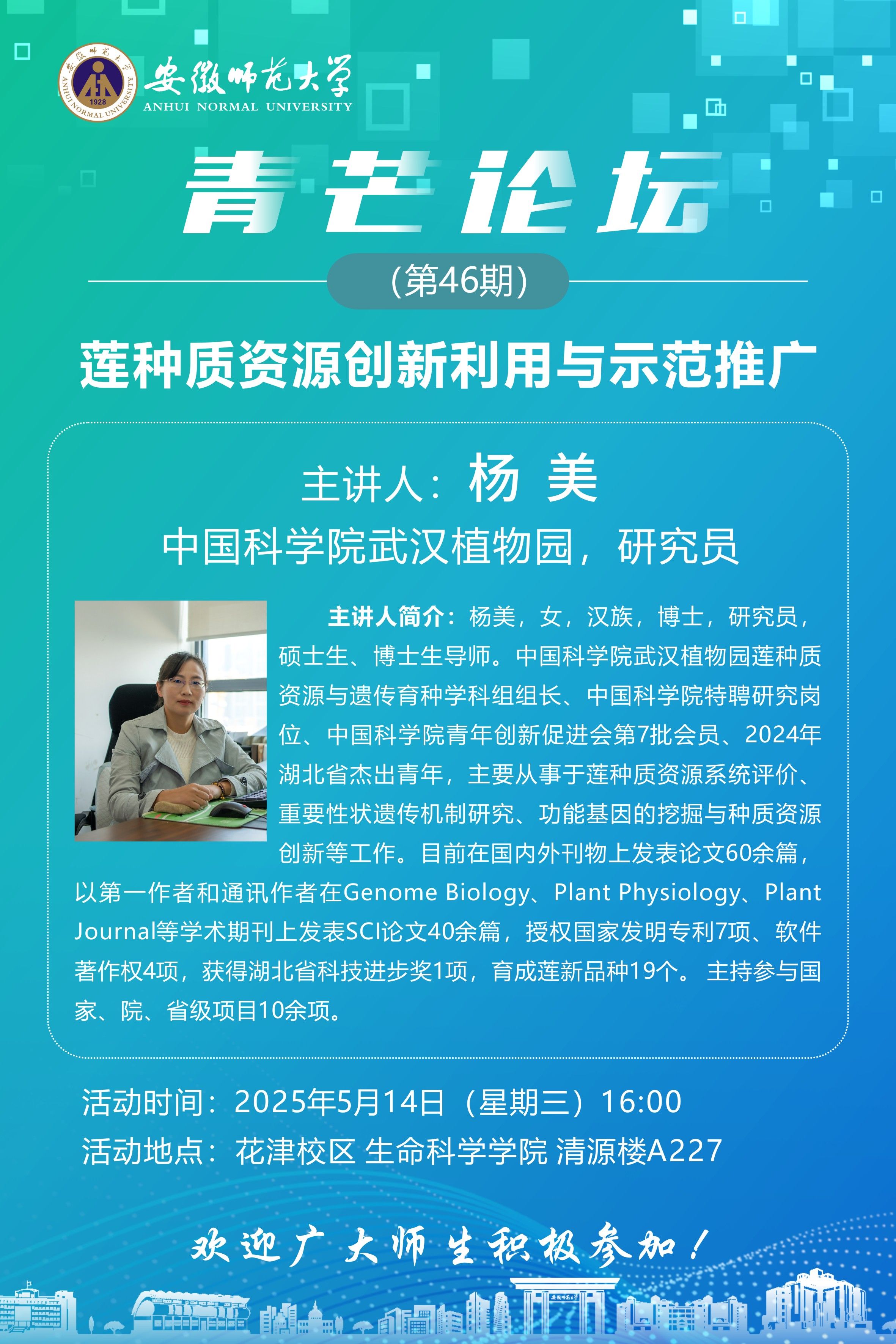 【学术预告】青芒论坛第46讲:莲种质资源创新利用与示范推广