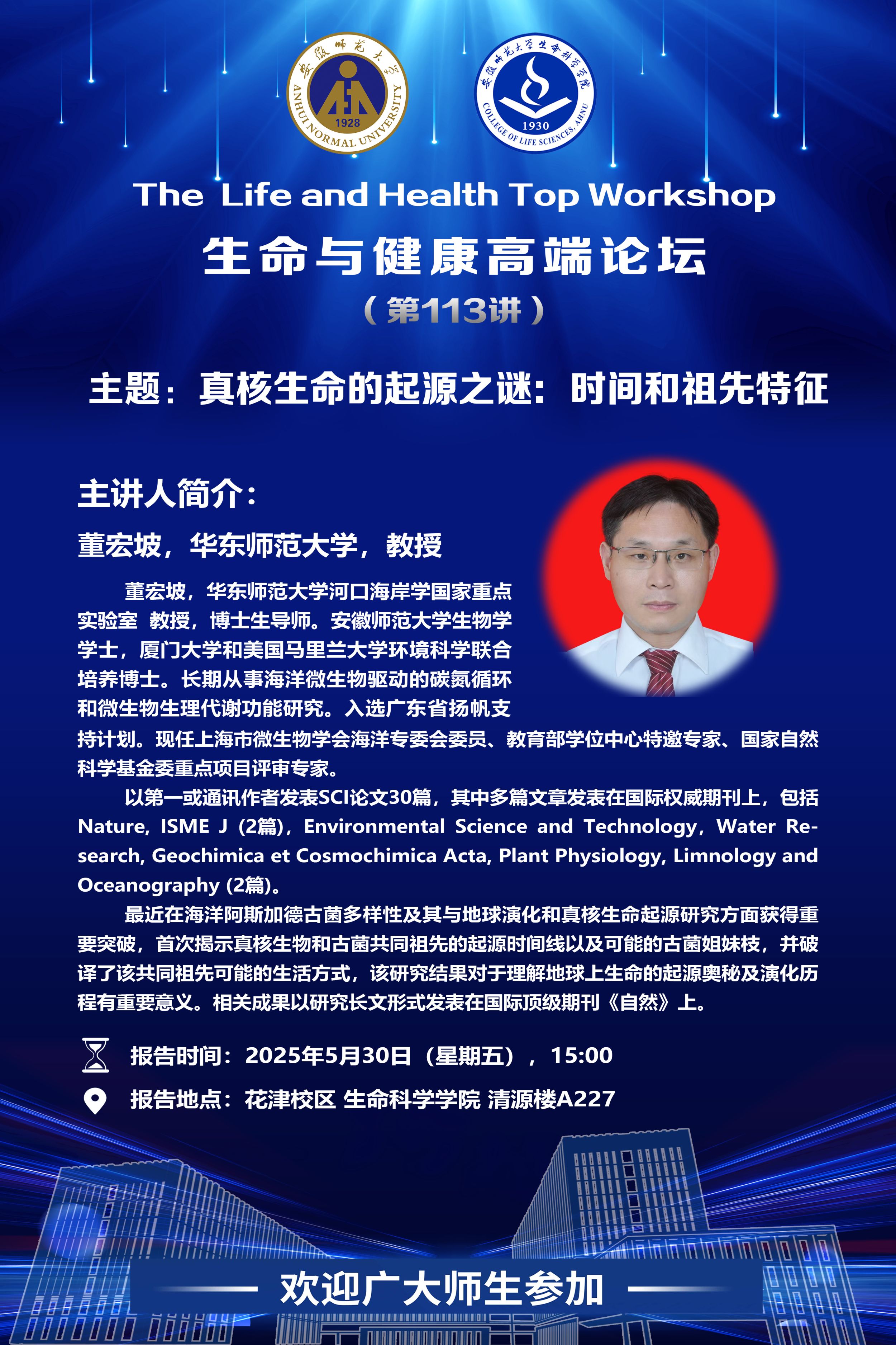 【学术预告】生命与健康高端论坛第113讲:真核生命的起源之谜:时间和祖先特征