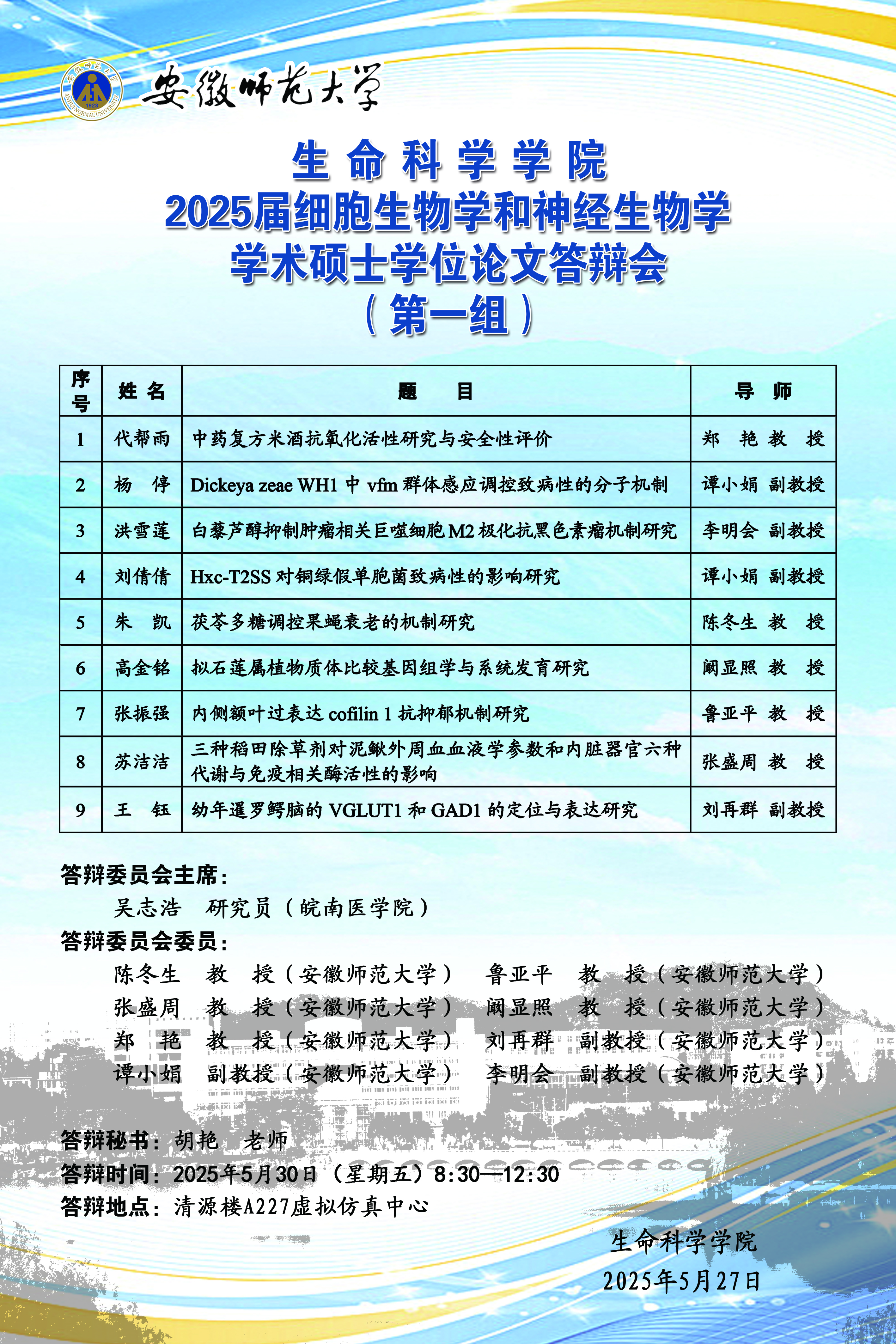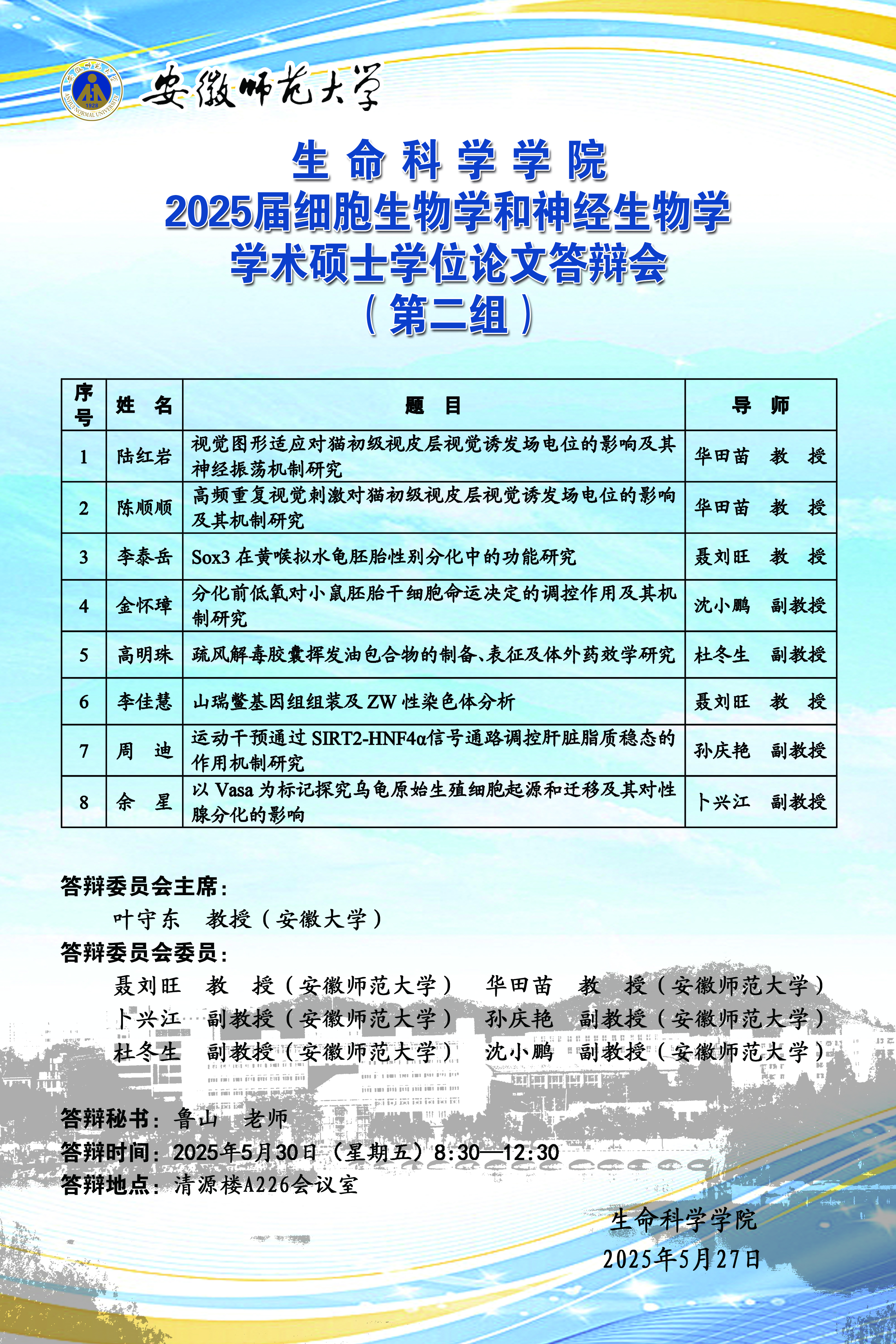 m88官网2025届生物学专业硕士学位论文答辩会(细胞生物学)
