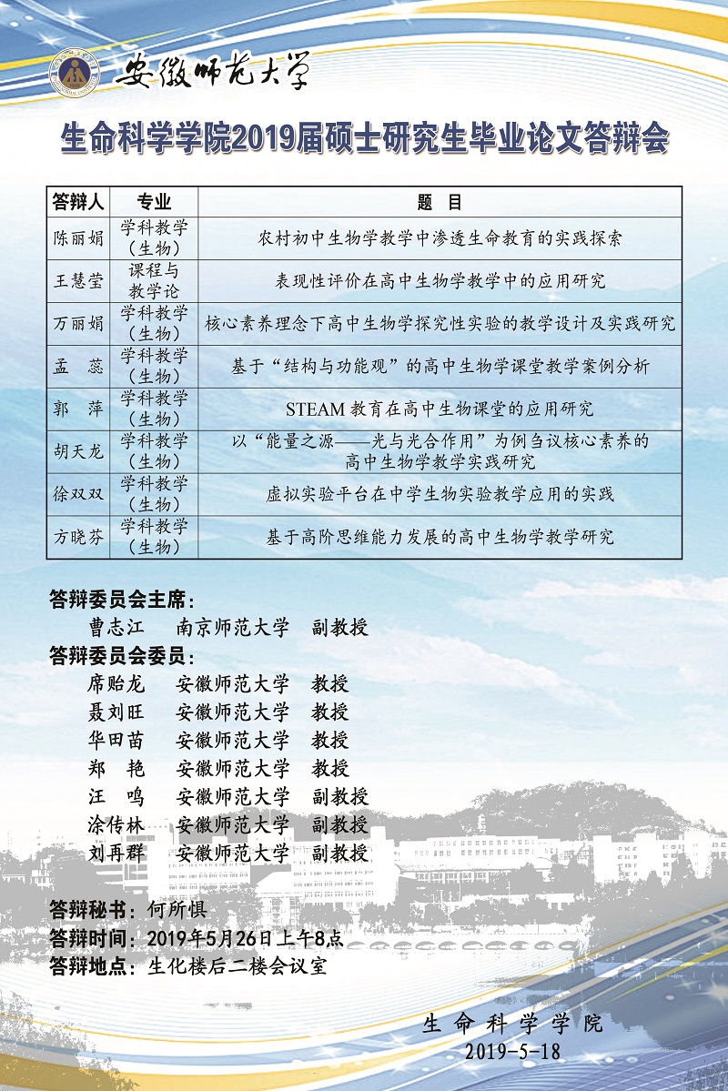 学科教学(生物)学位点2019年毕业答辩公告 第一组