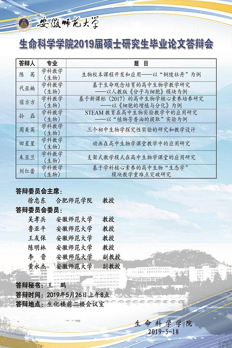 学科教学(生物)学位点2019年毕业答辩公告 第二组