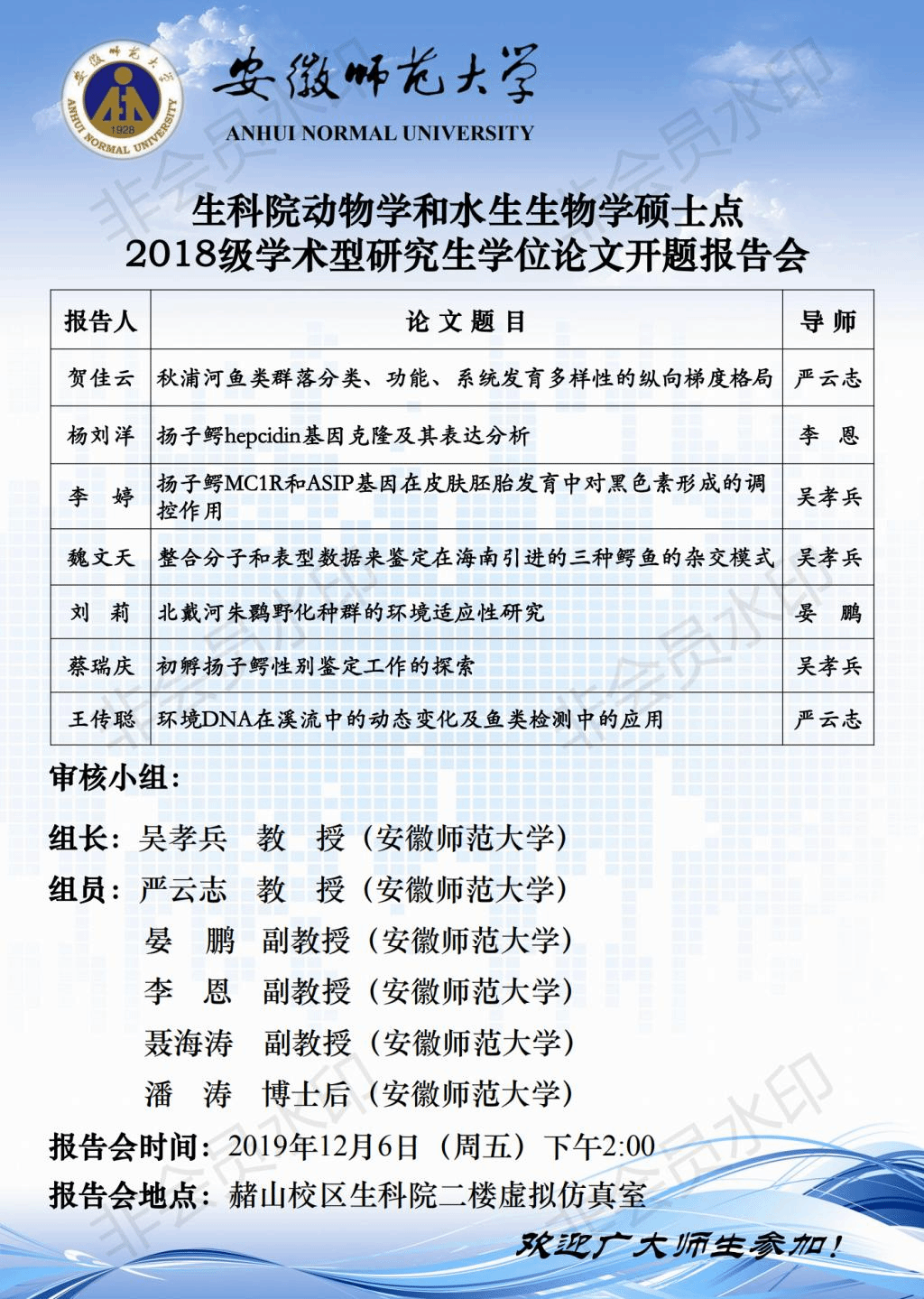 动物性和水生生物学硕士点2018级学术性研究生学位论文开题报告会
