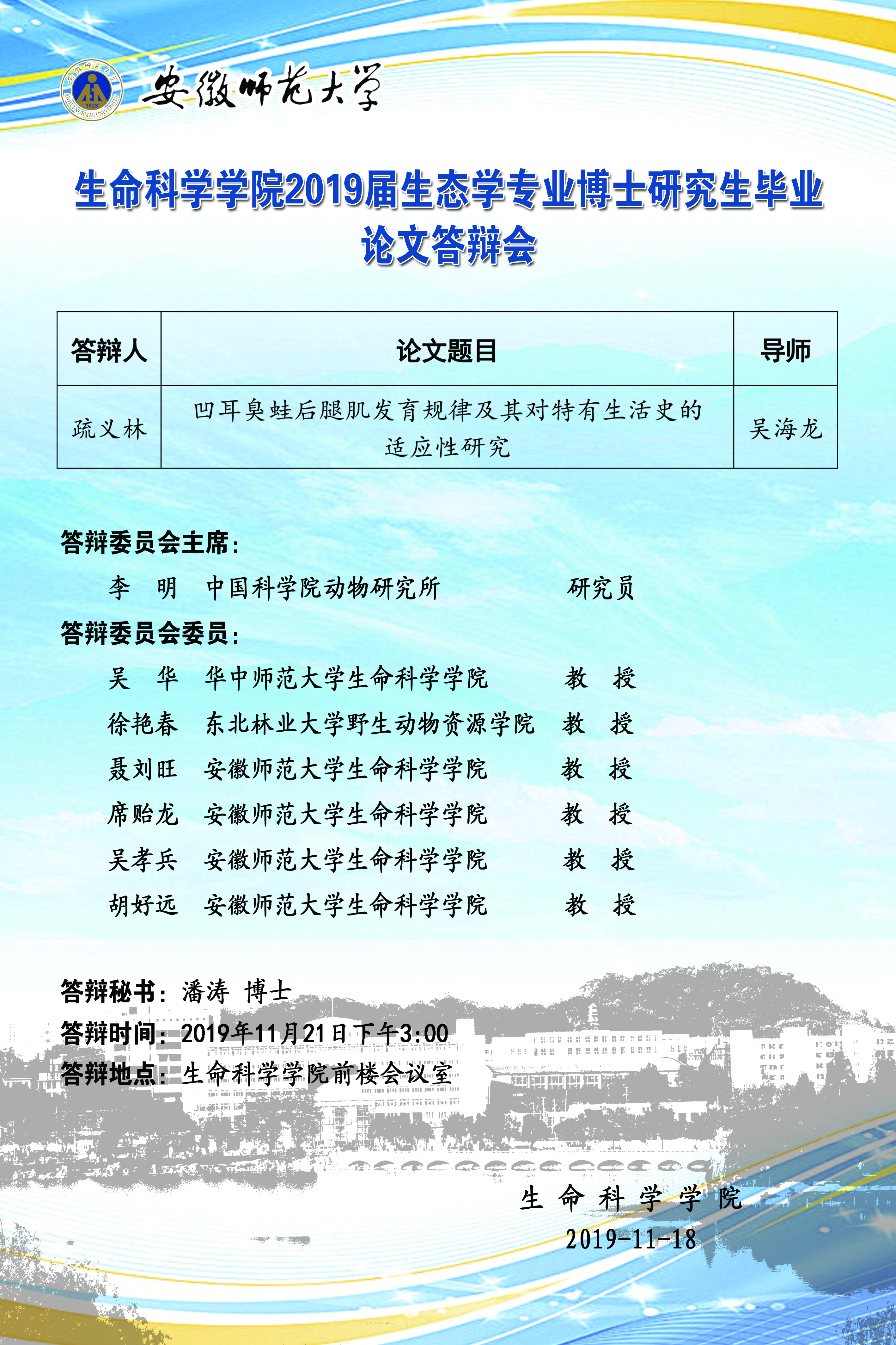 安徽师范老员工命科学公司2019年下半年生态学专业博士研究生毕业论文答辩会(二)