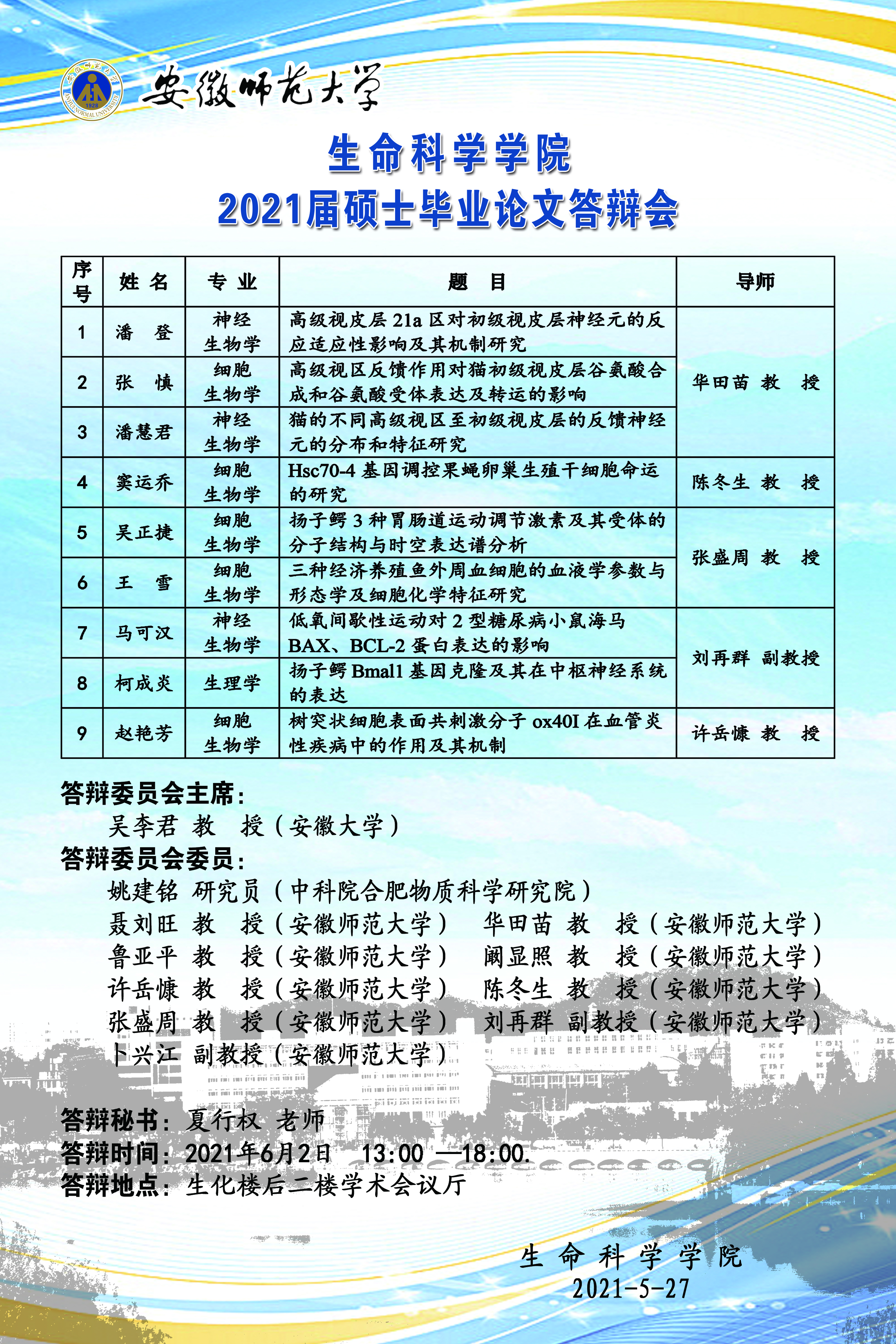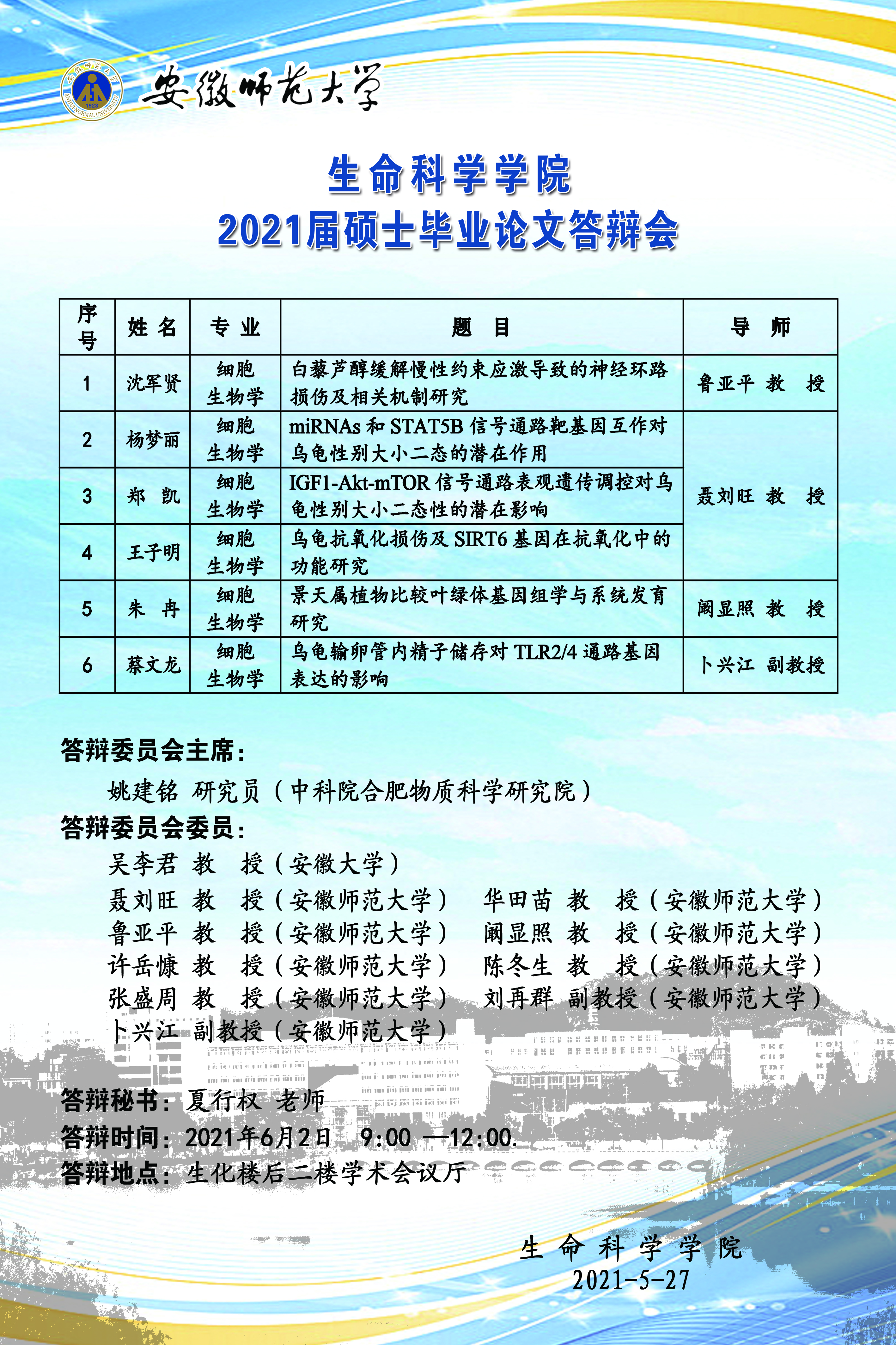 m88官网2021届硕士学位论文答辩会(细胞生物学、神经生物学)