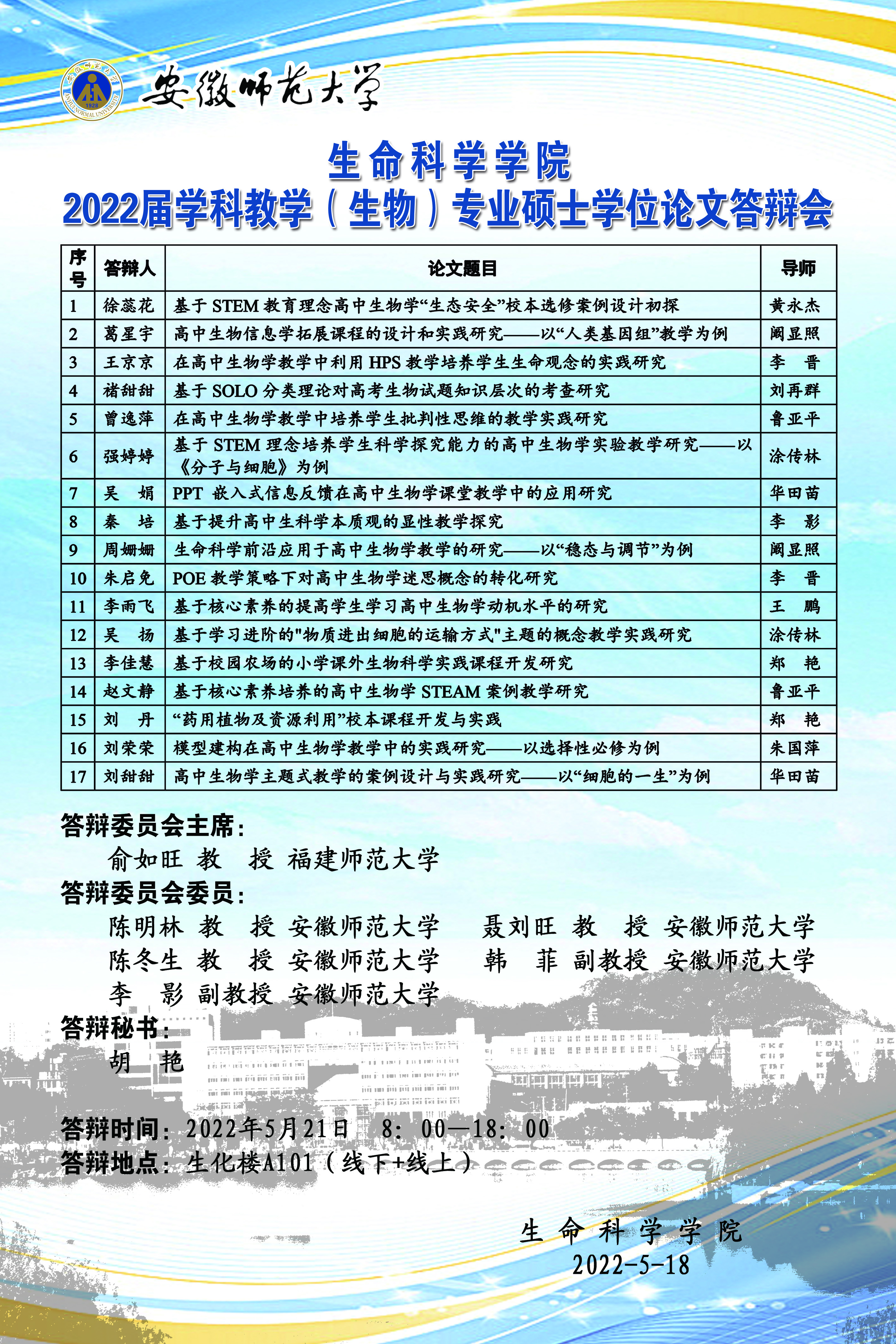 下一篇:2022届学科教学(生物)专业硕士学位论文答辩会(一)