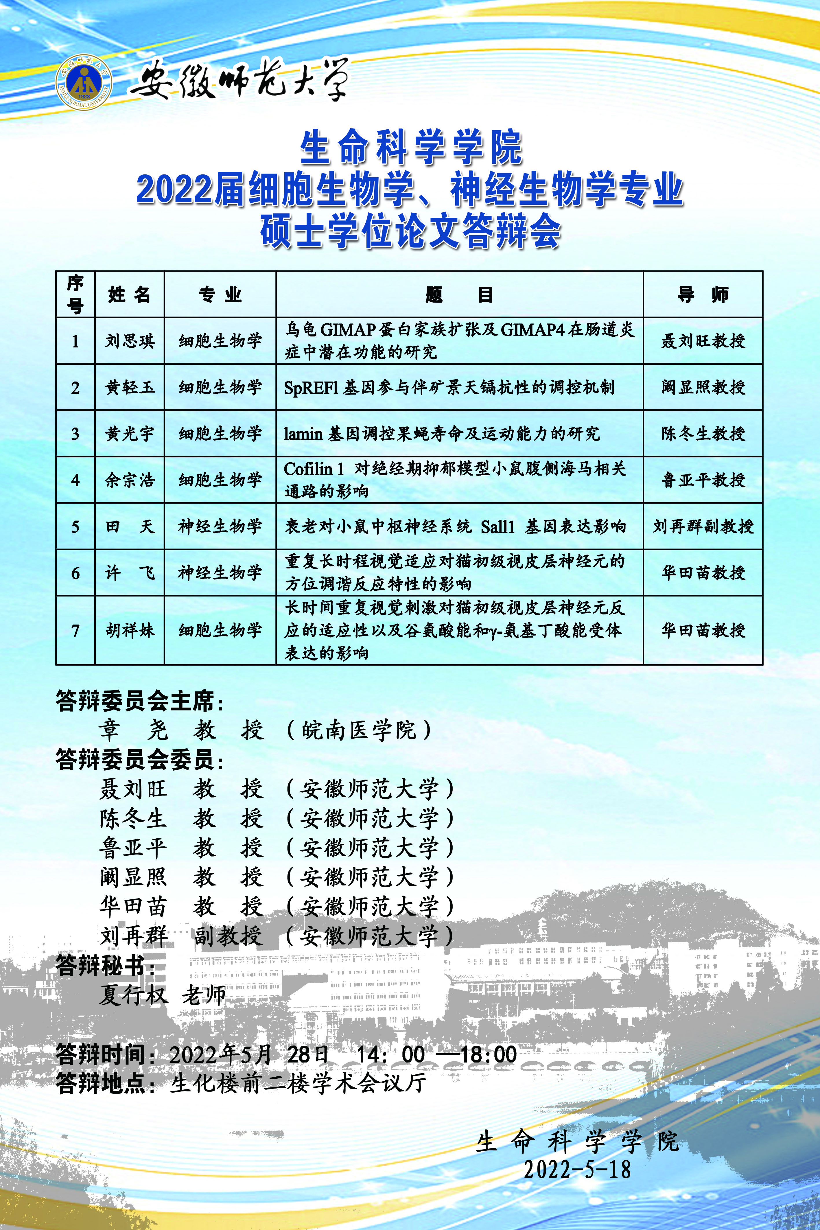 2022届细胞生物学、神经生物学专业硕士学位论文答会