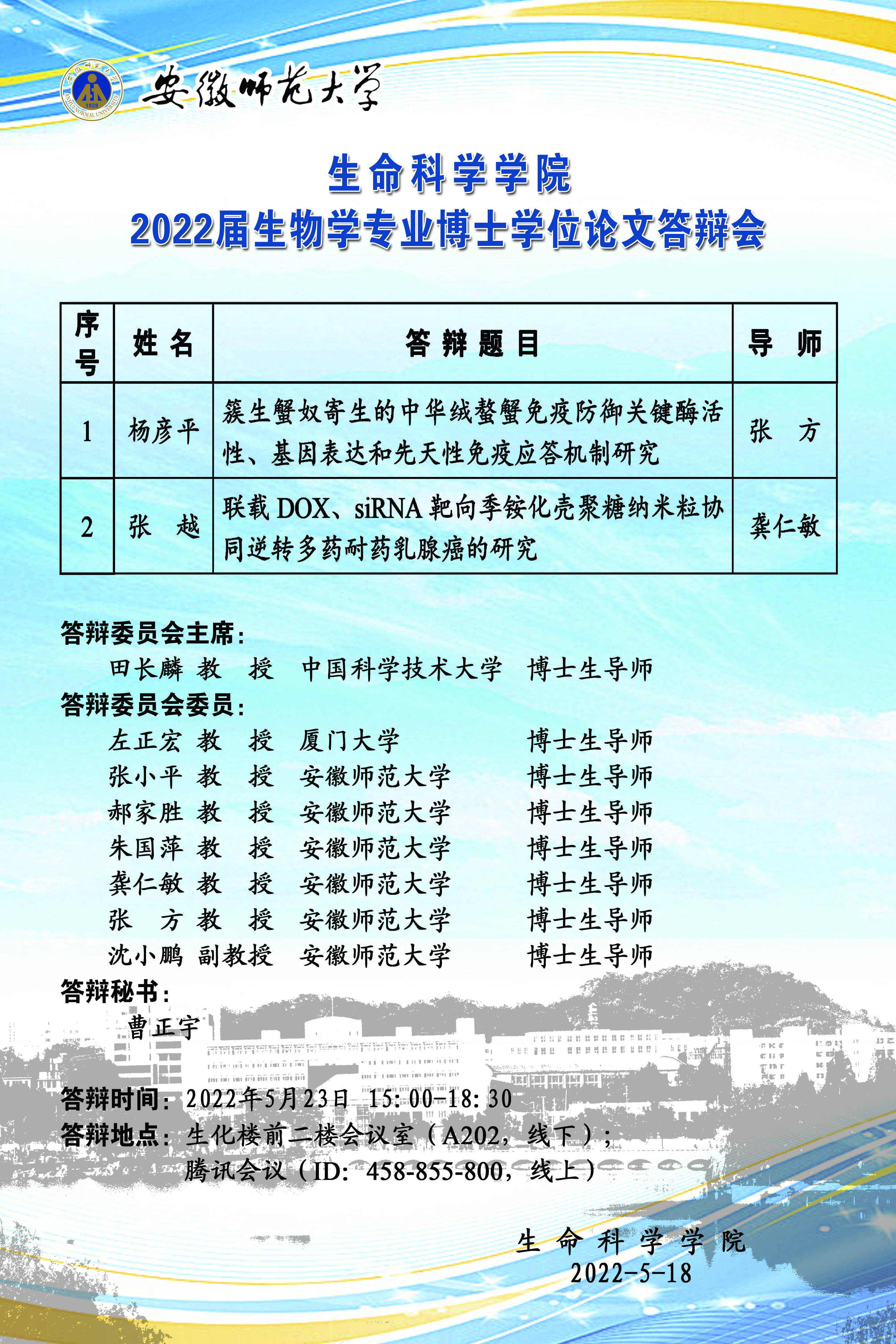 下一篇:2022届细胞生物学、神经生物学专业硕士学位论文答会