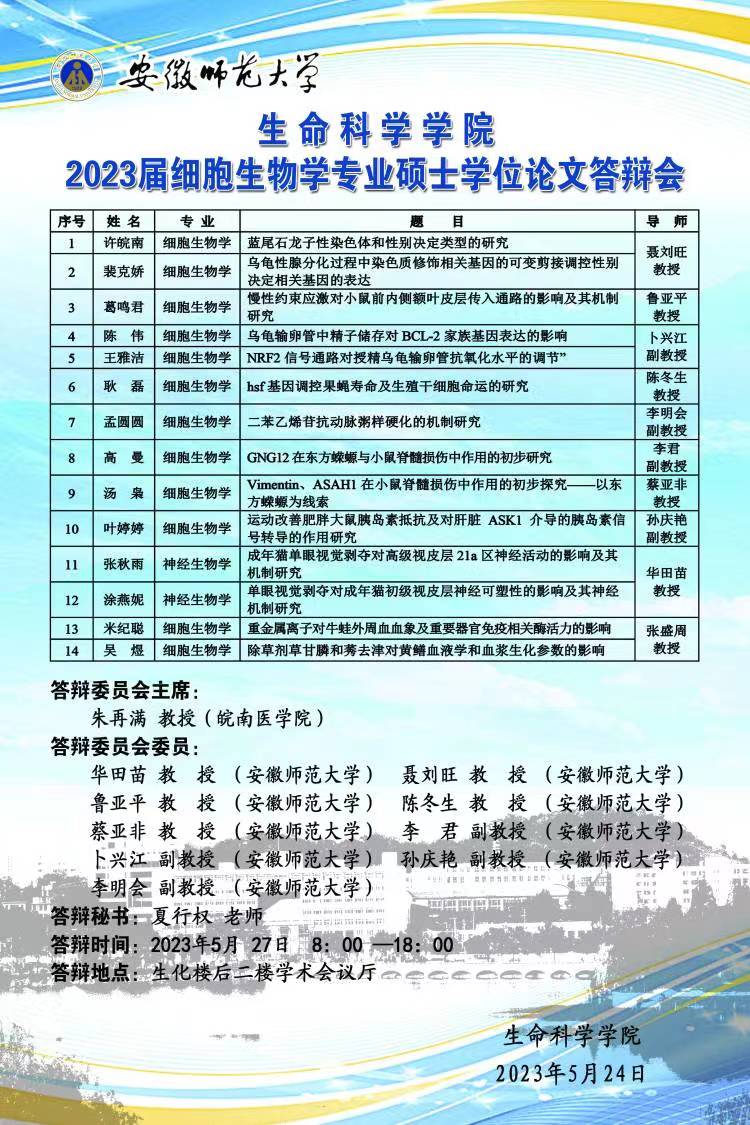 m88官网2023届细胞生物学专业硕士学位论文答辩会