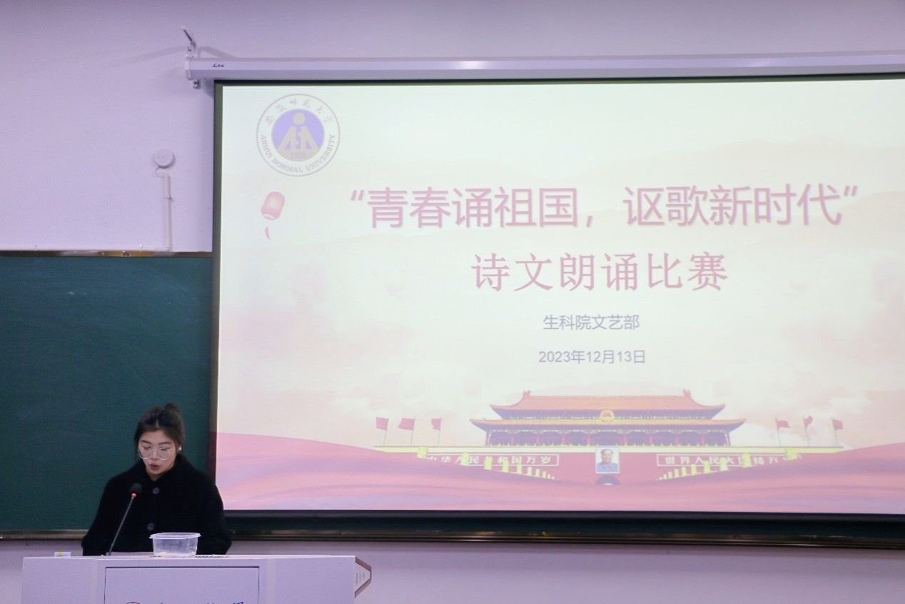 (本网讯 院员工会)为丰富校园文化生活内涵,提高老员工艺术素养和综合素质,弘扬社会主义核心价值观,传承中华优秀传统文化,12月13日下午,公司在赭山校区教学楼1104教室举办了以“青春诵祖国,讴歌新时代”为主题的第十七届诗文朗诵大赛院级选拔赛。活动由杜倩雯主持,评委为m88官网员工团委副书记王倩、员工会副主席蔡彤彤以及主持人队队长丁坤涵。