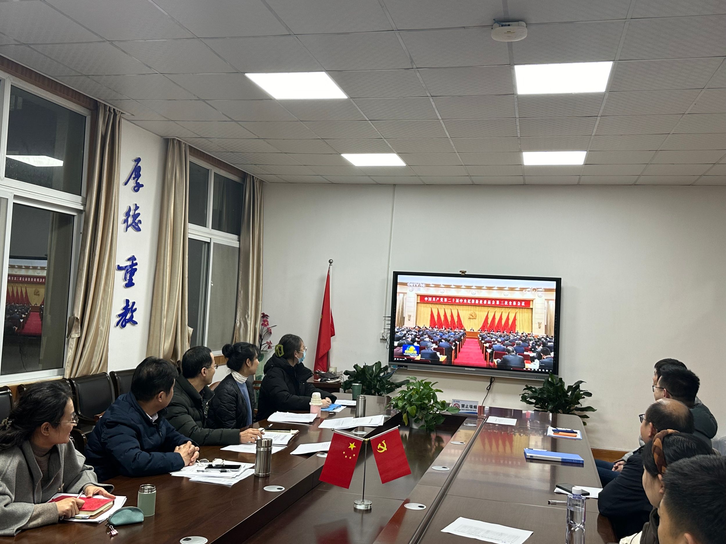 与会人员以观看新闻视频的方式集体学习了习近平总书记在二十届中央纪委三次全会上的重要讲话精神。蒋学波在总结中指出,要系统学习领会习近平总书记关于全面从严治党和党的自我革命的重要论述,不断提升政治素养和政策水平,尤其是总书记提出的在深入推进党的自我革命实践中需要把握好的九个问题,进一步履职尽责,营造风清气正的政治生态环境。