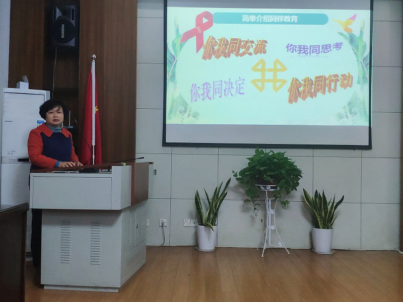 会后,段萍接着为同伴教育员详细介绍了同伴教育活动应该如何开展。而后分析了现阶段同伴教育活动当中存在的问题与瓶颈,分别是:同伴教育覆盖面不够广泛、同伴教育方式缺乏创新、同伴教育员缺乏有关生活技能教育。针对她提出的以上问题,保健协会在新的一年将会推陈出新,努力改正。最后,段萍副经理勉励各位同伴教育员将防艾知识切实转变成行动,做到知行并重。