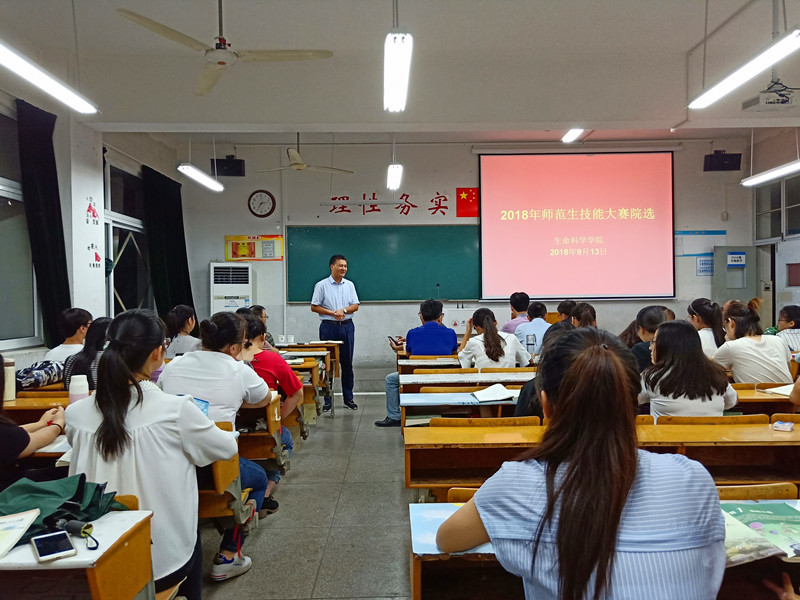 本网讯(生科院 左诗媛 何馗馗)以赛促学增本领,赶学比超争先进。为提高公司师范生技能,提升就业核心竞争力, 9月13日,公司在田楼8201、8209教室举办了第十五届师范生技能大赛院级选拔赛。专业教师鲁亚平、汪鸣、聂刘旺、晏鹏、韩菲、王鹏担任评委,生物科学专业负责人陈明林主持。公司领导胡好远到现场指导。
