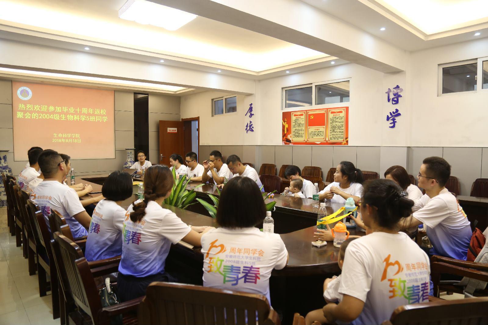 本网讯 (200届员工 汪春军)十年悠悠岁月,在无声无息中悄悄过去了。8月18日,生科院04级5班20余位员工,相聚赭山下,相依镜湖边,在毕业十年之后聚会母校,重温四年求学初心,共叙十年相思之情。