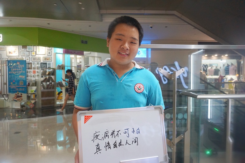 “希望你们早日康复。”一个孩子在白板上歪歪扭扭地写下来这几个大字,“姐姐,那些病人真的会看到吗?”写完后他疑惑地问道。“会的,他们会用心感受到的。”另外也有一些大妈大爷并不会写字,让团队成员代替他们写下祝福。其中一位老大爷说:“以前我一个亲戚也得了结核病,后来没治好,他们是很痛苦的,希望结核病人都能得到成功的治疗。”一言一语,一字一句,大家对结核病患者的祝福送了一路。