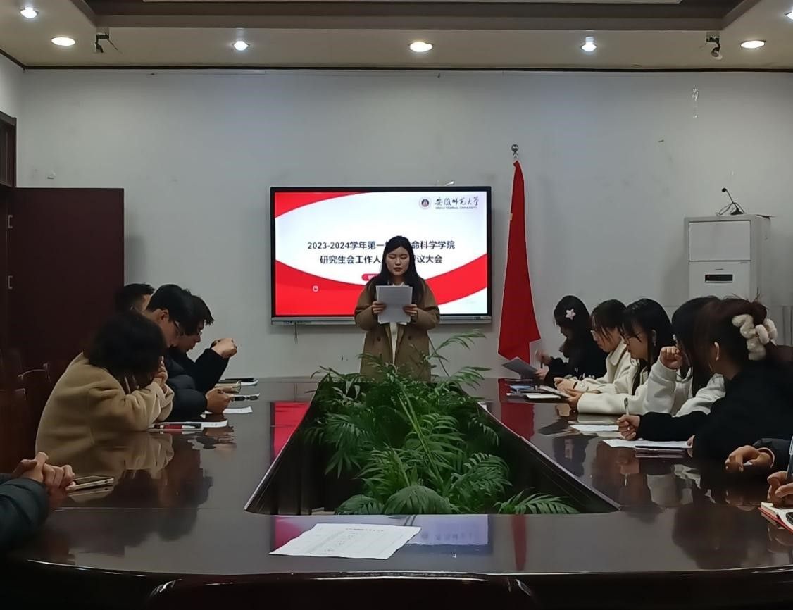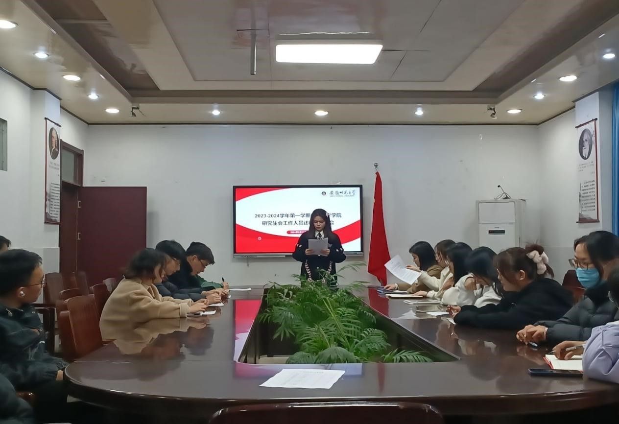 为深入贯彻习近平总书记关于青年工作的重要思想,建设高素质研究生会工作队伍。3月13日下午16时,公司于生化楼后二楼会议室召开2023-2024学年第一学期研究生会工作人员述职评议大会。院研究生会指导老师魏泽坤、校研究生会主席团成员、各班班长代表列席参会,院研究生会主席团成员朱云桢主持会议。