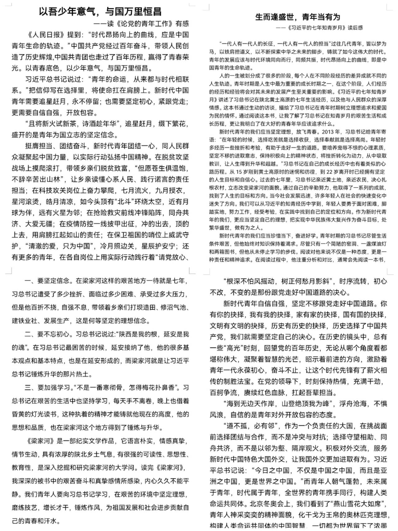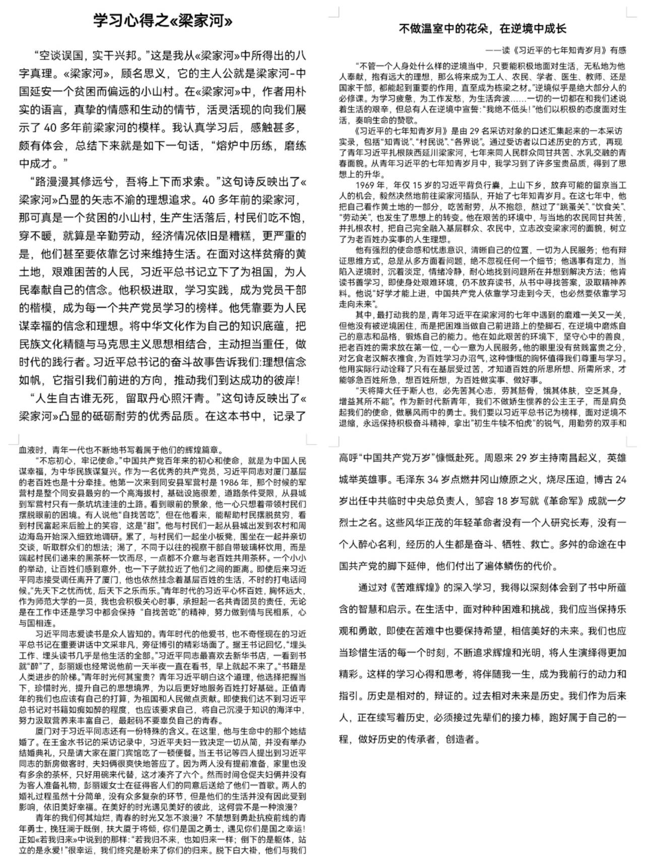 青春共读课通过组织员工阅读和讨论经典书籍,培养他们的人文素养和批判性思维。寒假期间,员工们阅读了《习近平的七年知青岁月》、《梁家河》、《习近平用典》、《平易近人》、《苦难辉煌》等相关书目,一篇篇读书笔记,正是员工们在学习过程中逐渐积累的精神财富。它们不仅记录了员工们对知识的理解和消化,也见证了他们思考和成长的轨迹。