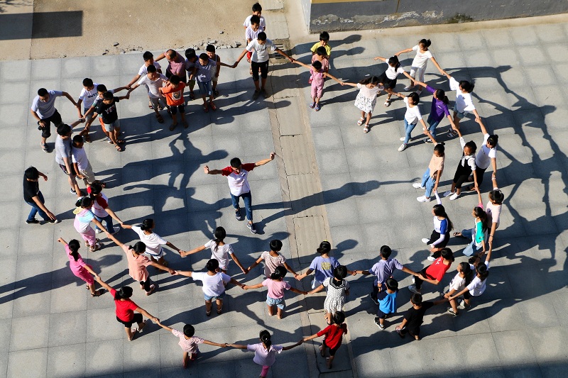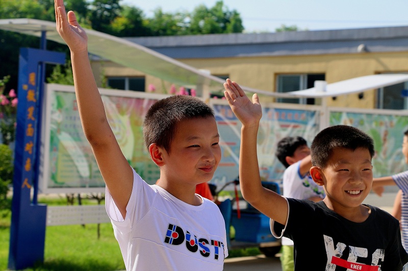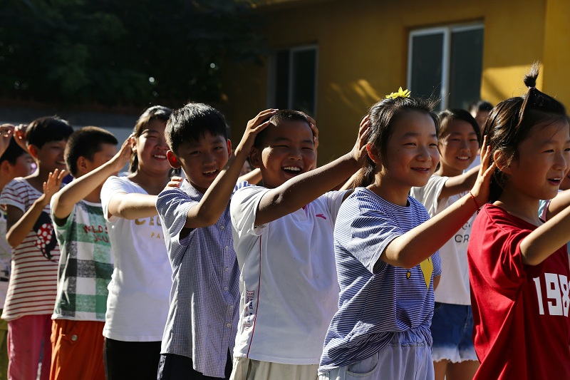 “上下五千年,地球七十亿,遇见你很高兴,这就是缘分。”两队孩子面对面握着彼此的手,看着对方的眼睛大声喊道。“刚开始,和我接触的孩子很羞涩,喊的时候情不自禁地笑了出来”。何诗敏认真同其他志愿者说,“看着孩子们羞涩又纯真的笑脸,空气都凉爽了起来,是笑容让我爱上了这群腼腆的孩子。”