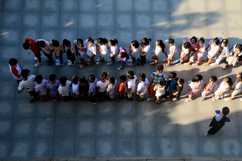 志愿者观察到,初开始,有些孩子很不愿意离开自己的伙伴,甚至有些小情绪,在黄朝阳和其他志愿者的鼓励下,孩子们鼓足勇气,站到了陌生的另一列。