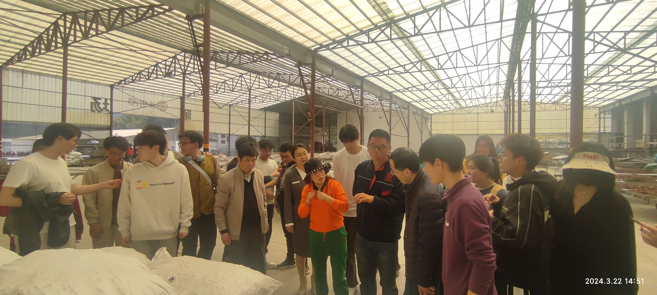 之后,师生们来到了池州适四时农业股份有限公司的冰雪容黄精基地。同学们参观了生产车间,见证了黄精九蒸九晒的生产工艺以及从原材料到成品后期的切片、干燥、包装等加工环节。基地负责人详细介绍了黄精的种植技术、药效研究以及市场前景,分享了在黄精生产加工的丰富经验和独到见解。师生积极参与讨论,对传统中药与现代科技结合有了进一步理解。