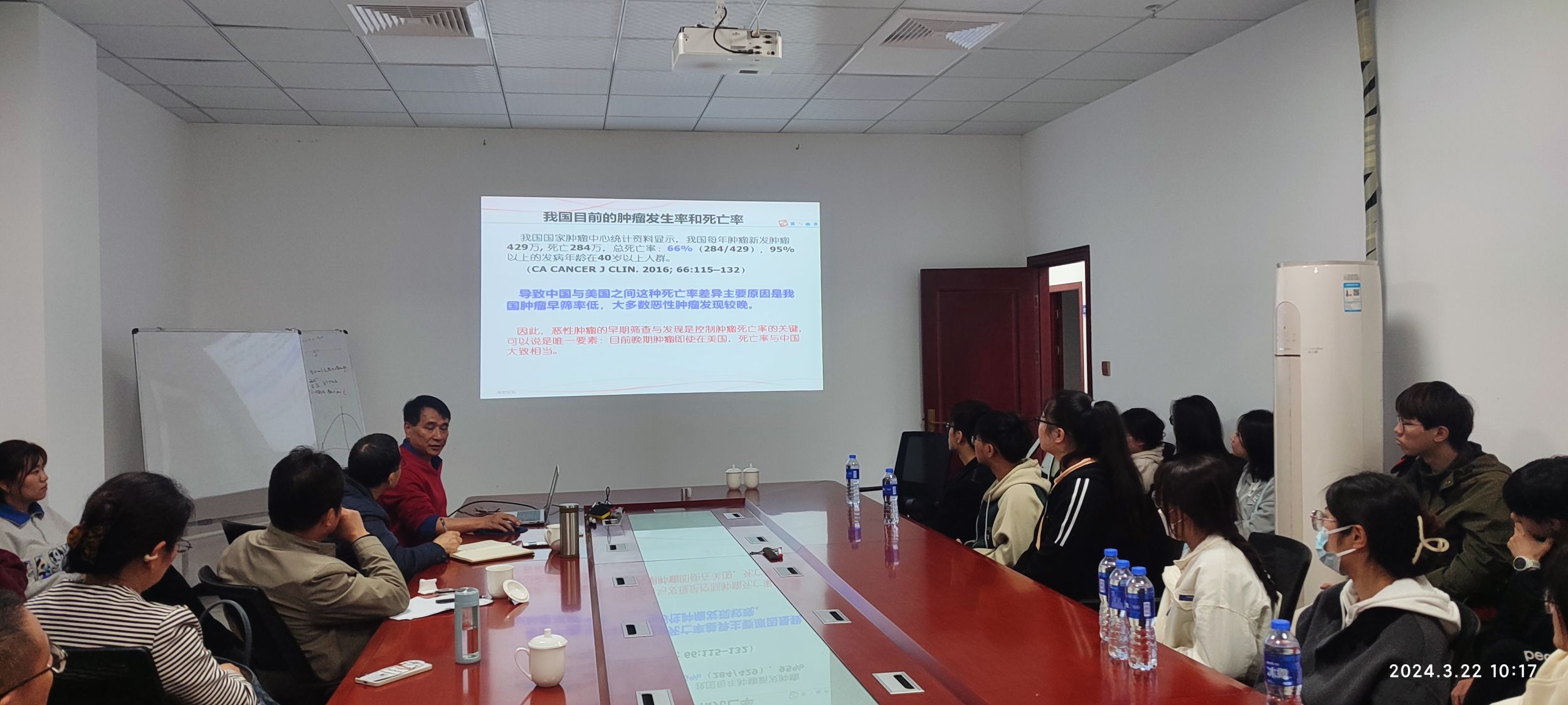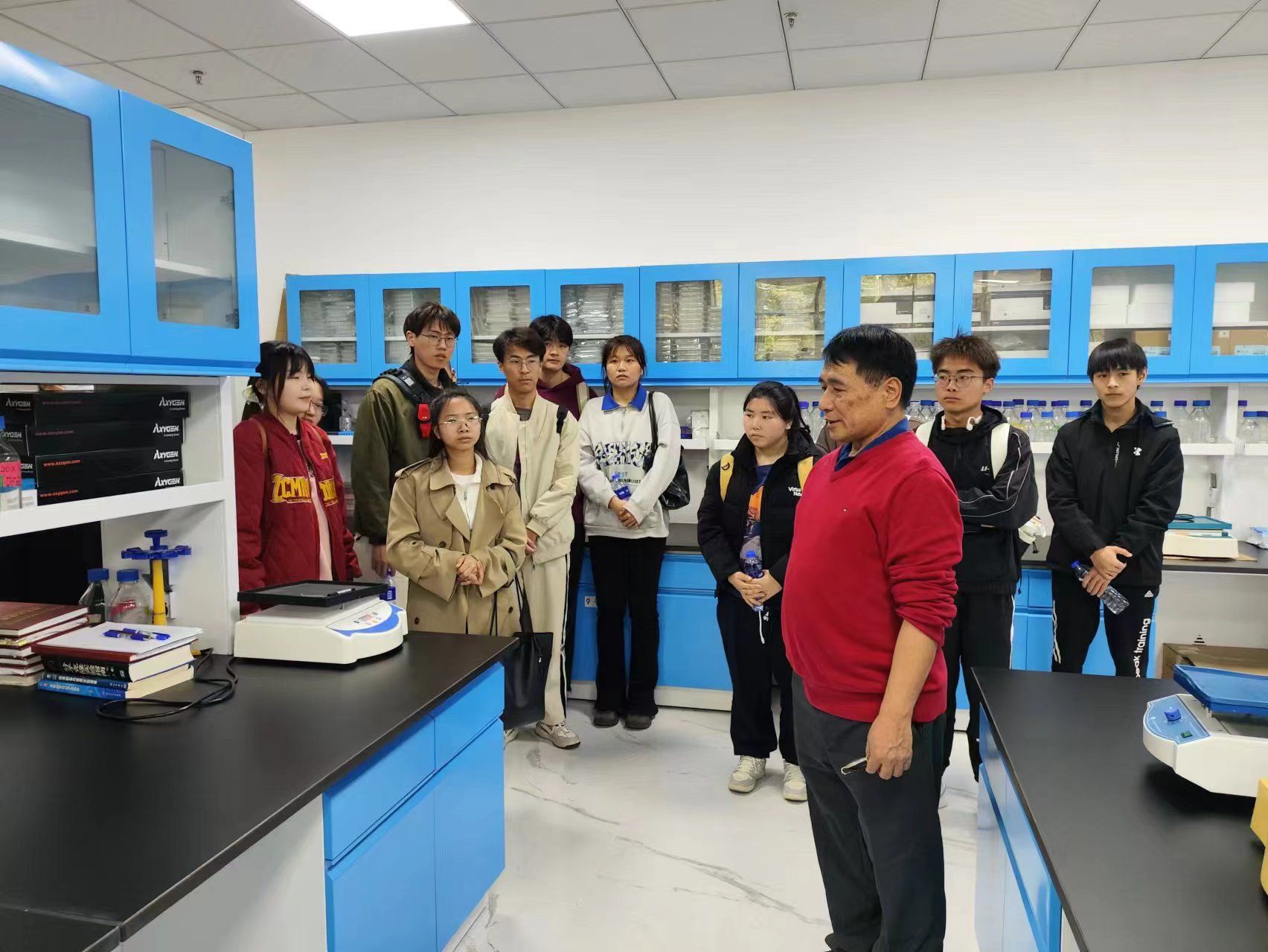 师生一行参观了安徽德合功生物科技有限公司的实验室,了解企业环境。执行董事兼总经理张权庚教授详细介绍了公司的主营业务,分享了他们在肿瘤早筛领域的科学研究进展和企业目标,通过技术创新,预期在达到国际领先水平前提下大幅降低肿瘤早期筛查的价格,从而提升国内肿瘤早期筛查普及率、降低肿瘤的死亡率,将产生巨大的的社会效益。此外,还介绍了他们的招聘计划,希望吸引有志于生命科学研究的青年才俊加入,共同推动公司事业发展。