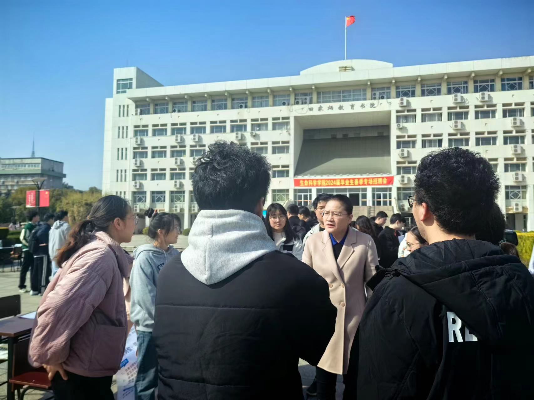 本次招聘会共14家用人单位参加,分别提供了发酵工程师、细胞研究员等多个就业岗位,覆盖了所有专业的就业需求。同学们也手持简历,穿梭在各个招聘展位前,了解企业的招聘程序、工作内容、发展前景、薪资待遇、职位晋升等内容,招聘工作人员热情地解答了毕业生提出的相关问题。经理朱国萍、公司党委副书记汪倩倩和毕业班辅导员在招聘会现场与各用人单位、求职的员工进行亲切交谈,了解用人单位的招聘需求,询问毕业生的求职意向,现场解答了毕业生所关心的就业创业政策等问题。
