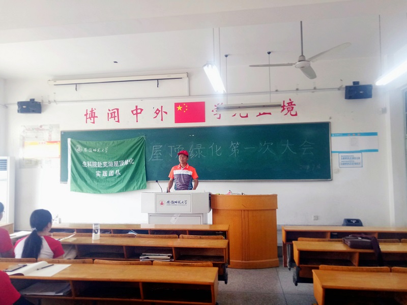 本网讯 (生科院 张玉玲 夏林) 7月16日上午,公司赴芜湖市屋顶绿化实践团队在田家炳楼8309教室举行启动仪式。指导老师涂传林及全体队员参加了仪式。