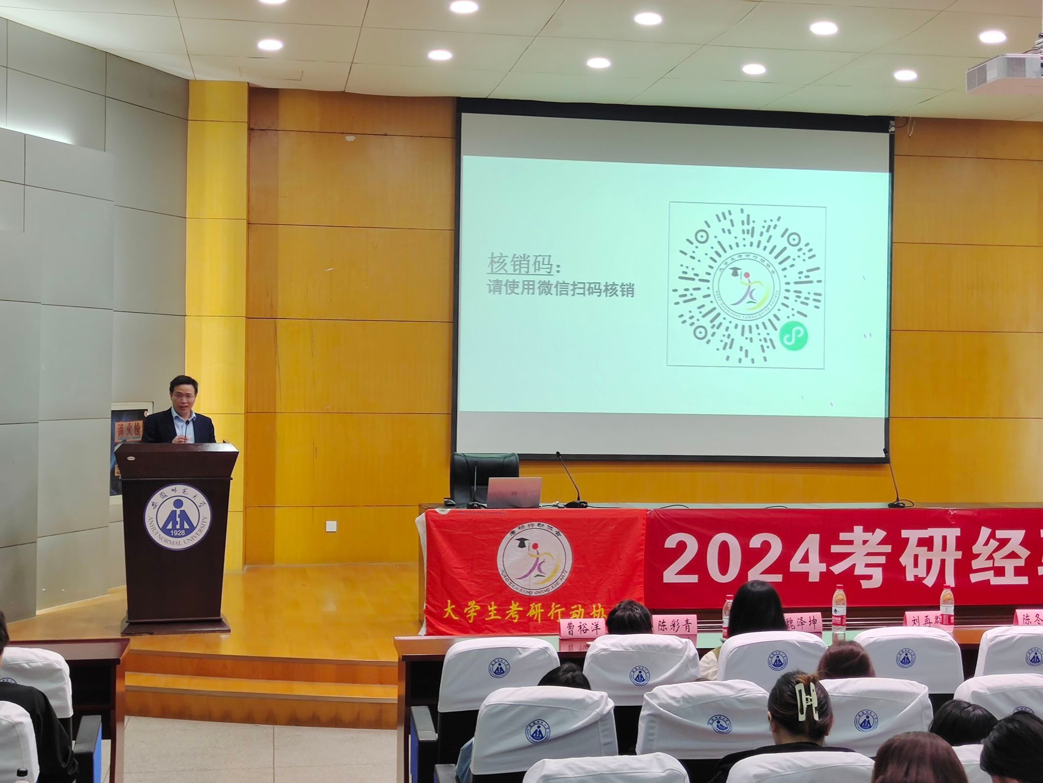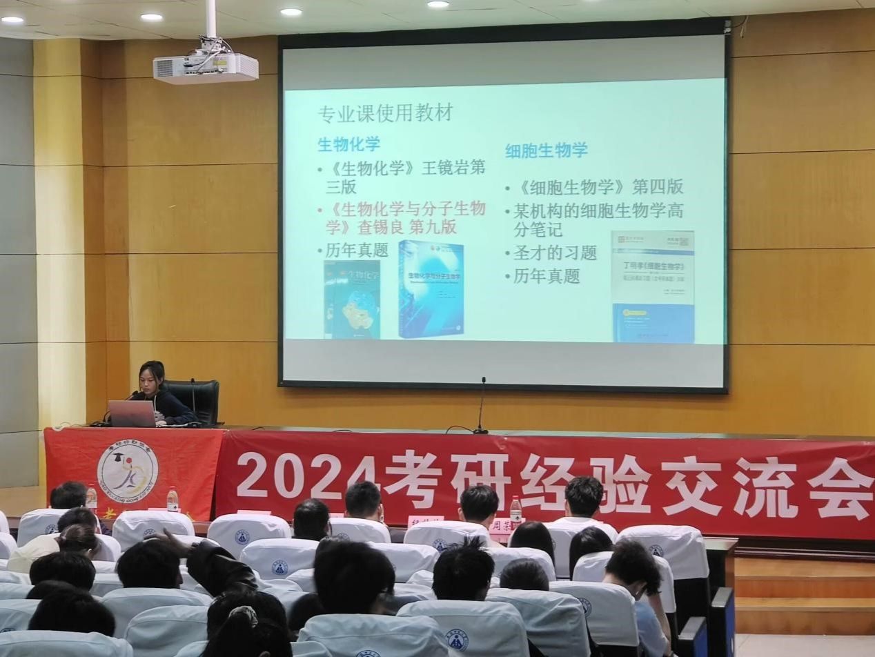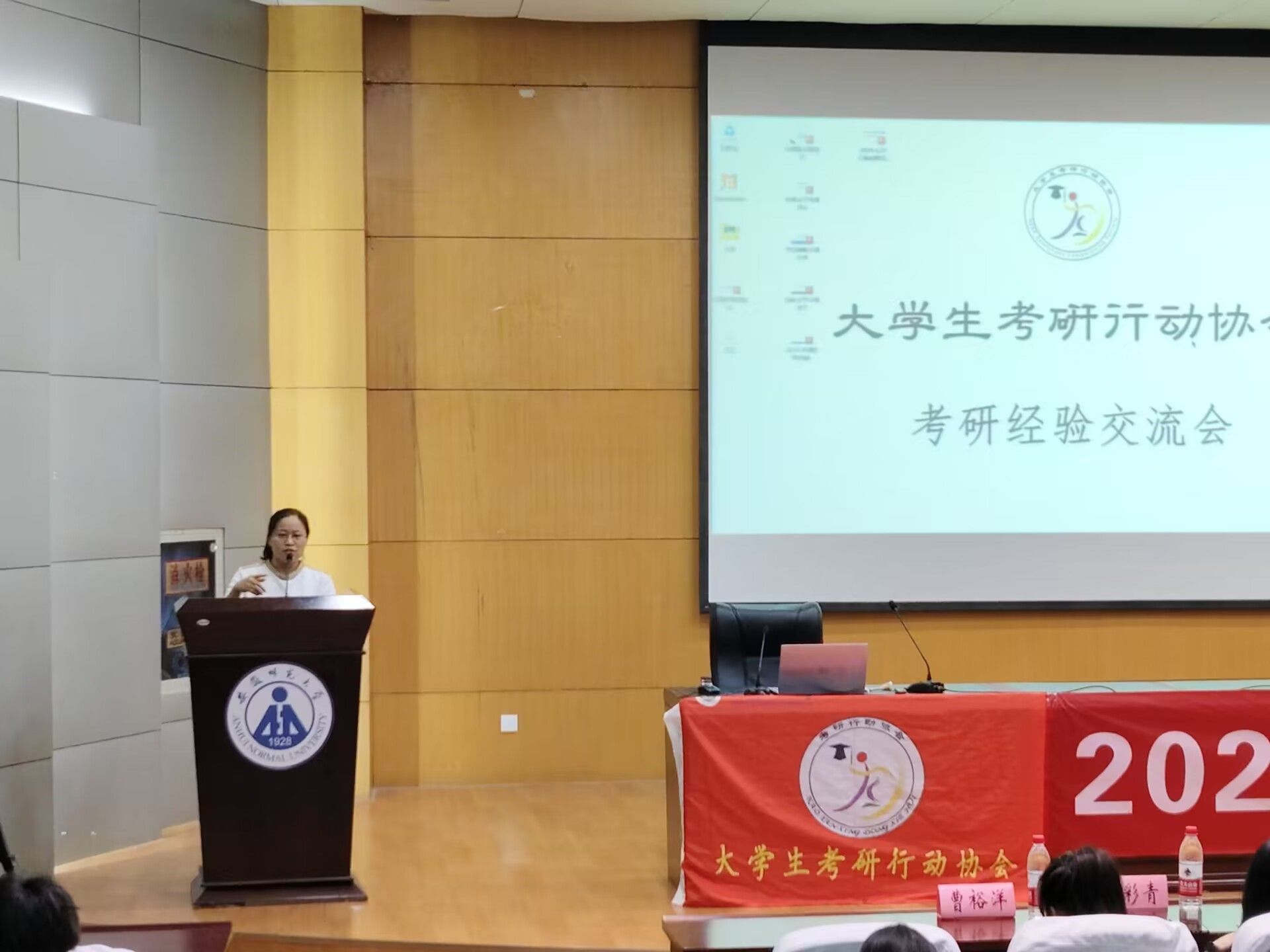“路漫漫其修远兮”,考研是一段充满挑战和机遇的征程,后继者们往往会感到迷茫和困惑。本次交流大会还邀请了已经成功上岸的学长学姐们分享他们一路奔波中积累下来的经验。曹裕洋从前期准备、考试科目、时间安排、心态调整四方面介绍,分享了她考上苏州大学的经验,陈彩青分享了中国科公司的考研经验,倪海航分享了华东师范大学的考研经验,周荣杰分享了南京大学医学部的考研经验,纪帅帅分享了中国科学技术大学的考研经验。他们的宝贵经验将激励本届考研人奋发努力。