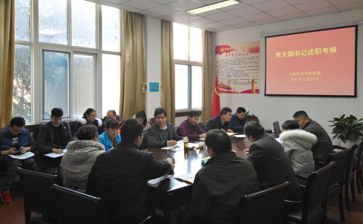 蒋学波带领大家学习公司党委《 关于开展2017年度公司基层党建述职评议考核工作的通知》(师发【2017】50号)文件精神,解读了《2017年度公司党支部书记述职考核办法》。之后,生科公司党委下属14个党支部书记提交了自评表并对照考核内容,围绕履行党建工作责任情况、支部党建工作进展情况、特色工作和存在的问题、下一年工作思路和打算等几个方面依次进行了述职。