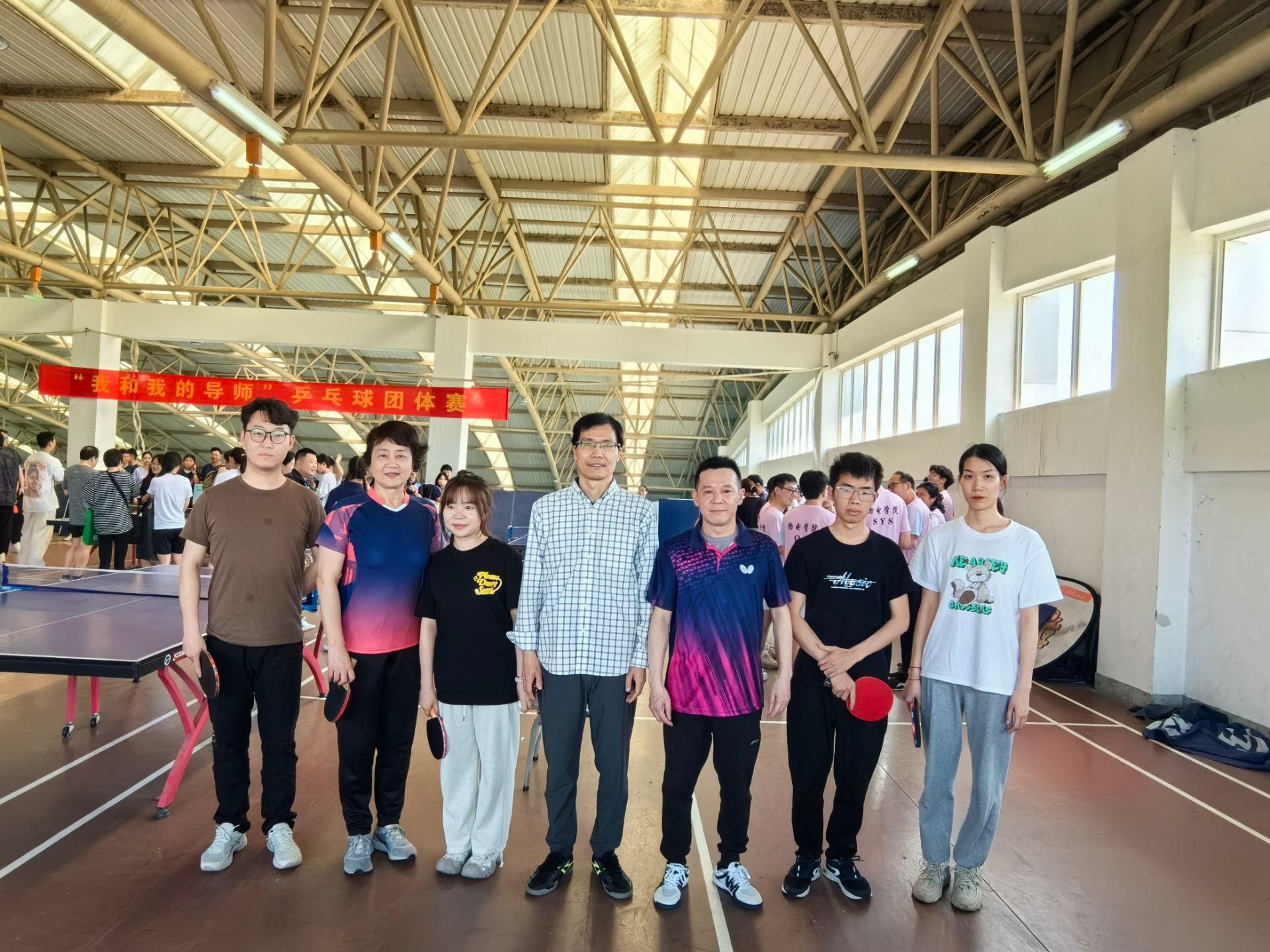 5月8日,由m88官方网站登录地址研究生院主办的第十六届研究生科技文化艺术节“我和我的导师”乒乓球团体赛在花津校区南侧体育馆一楼正式收官。本次赛事分为初赛和决赛两个阶段进行。公司代表队由王晖、李恩、苏成勇、张晓平、刘爱民、鲁山6名教师以及杨蒙恩、王家乐等5名研究生组成。