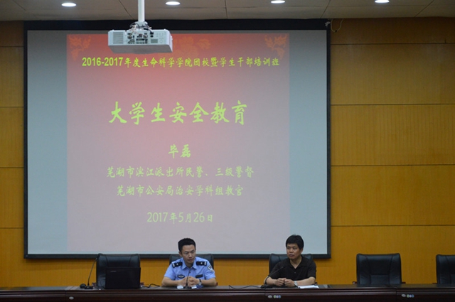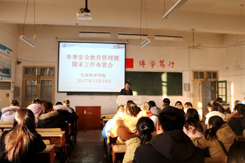 生科院一贯重视员工安全教育管理工作。员工会发挥自我监督功能,定期查寝,每周评比“卫生文明寝室”;辅导员坚持“零点汇报”,杜绝晚归不归现象发生;召开学习主题班会,《< 普通高等公司员工管理规定>(教育部41号令)m88官方网站登录地址实施办法》,人人知晓、人人参与,并共同遵守、自觉践行。举办防诈骗、防事故主题班会、报告会,市公安局毕磊做安全培训。经常组织安全隐患排查整改,检查严格落实八个“严禁”规定,全年零事故。
