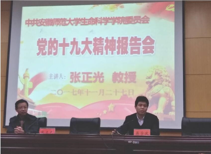 本网讯(生科院 汪倩倩)11月27日下午在田楼报告厅,生科公司党委邀请马克思主义公司张正光教授解读十九大精神,全体教职工及员工党员出席了报告会。报告会由生科公司党委书记蒋学波主持。