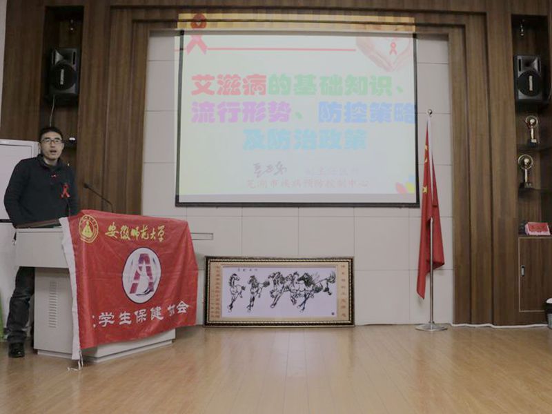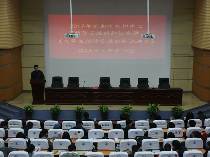 11月,生科院、校医院、镜湖区疾控中心联合举办芜湖高校老员工预防艾滋病知识讲座,邀请芜湖市疾病控制中心艾防科副科长、主治医师方艳姣等防艾专家分别在赭山校区和花津校区为全校新生普及艾滋病防控知识。通过此次讲座使员工们了解了艾滋病的起源、艾滋病病毒、传播方式以及预防手段,消除了大家对艾滋病无形的恐惧心理,帮助同学们提高艾滋病防治意识,提升自我保护能力,让艾滋病远离老员工,远离青年,向零艾滋、零歧视迈进。