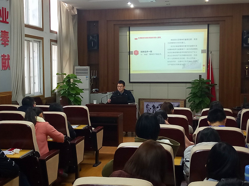 赵喆老师以奉献、友爱、互助、进步的志愿服务精神为引切入主题。他指出,志愿服务与党的宗旨有着内在一致性,即精神追求一致、价值取向一致。他针对当今社会人们对于志愿服务“慈悲为怀”、“廉价劳动”、“富人游戏”的理解误区做了诊断说明,并系统阐述了志愿服务的特征、技巧及素养。他强调了青年党员要争当志愿服务的排头兵,在志愿服务中,注重引领社会风尚、带动培育时代新人、努力塑造社会品牌、积极探索创新机制和不断丰富先进文化。最后,赵老师以入党誓词作结,要求青年老员工,在大学时期就立下全心全意为人民服务的宏图之志。