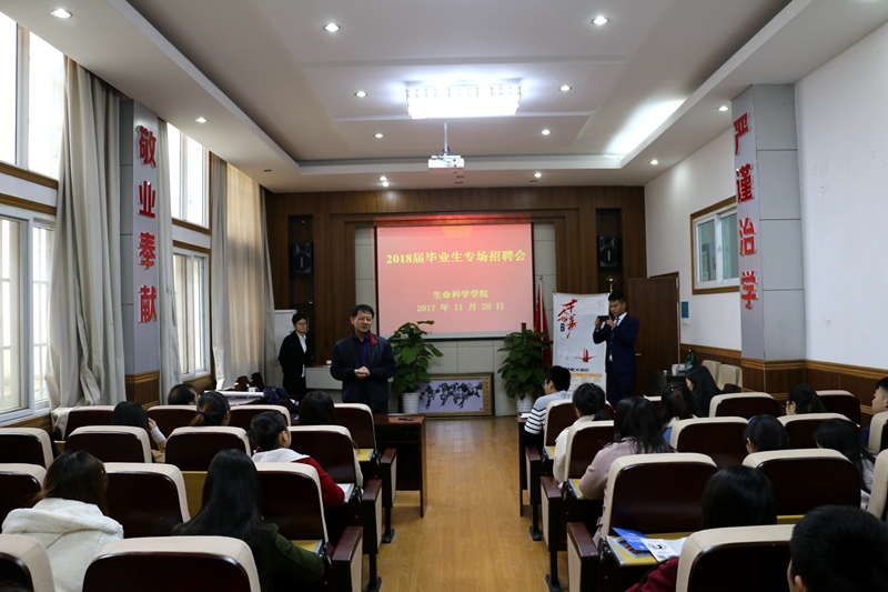 本网讯(生科院 赵喆)11月20日,牧原集团和杭州纳思书院在公司一楼学术报告厅举行专场招聘会。公司党委副书记刘振杰、专业教师涂传林、毕业班辅导员赵喆及2018届部分本硕毕业生参加了招聘会,招聘会由刘振杰主持。