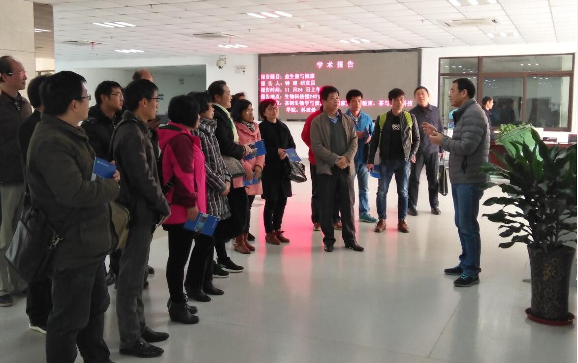 本网讯(生科院 汪倩倩)11月22日上午,生科公司党委书记蒋学波带领公司党员骨干、统战人士代表一行二十余人前往安徽农业老员工物科技楼考察科研平台党建工作。安徽农业老员工物技术中心主任杜先锋、生物技术中心党支部书记叶辉接待了生科院一行。