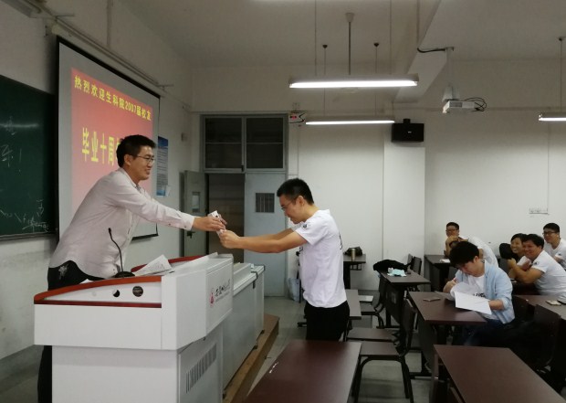 在田楼8403教室里,辅导员邵登辉老师给同学们开了一场特别的班会,他带领同学们观看了珍藏多年的大学照片,与同学们细说当年的点点滴滴,一同回味刚走进校园的懵懂与憧憬、上课自习和黄山实习的拼搏与努力、就业考研和毕业离别的压力与不舍…以“工作好、生活好、身体好”与同学一起共勉未来十年…最后,给每个同学发放了大学时期填写的第一份员工档案、请假条存根、户口迁移证复印件等资料。照片中稚嫩而又青春洋溢的面孔、四年成长过程的一幕幕场景,让同学们仿佛又回到大学时代。