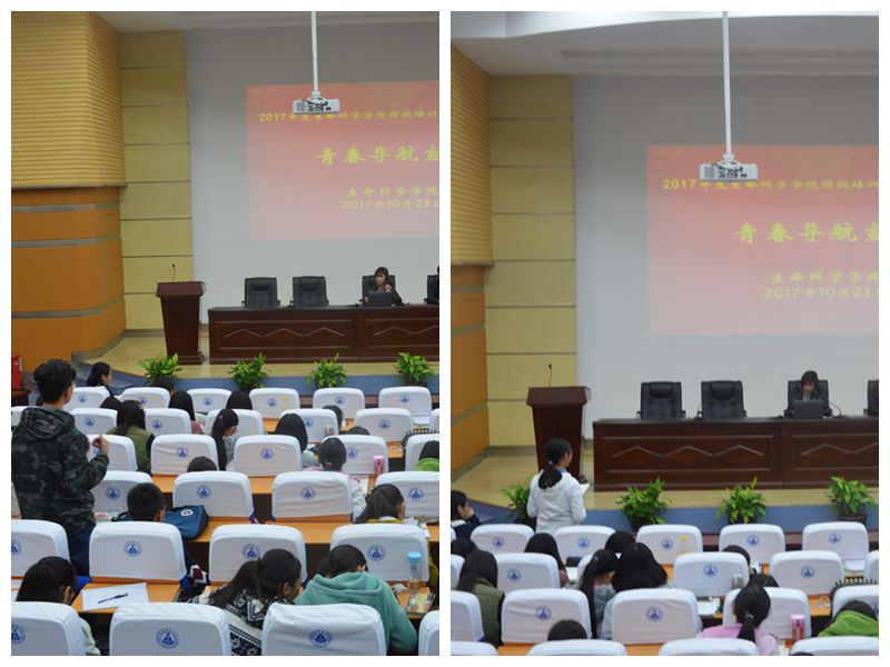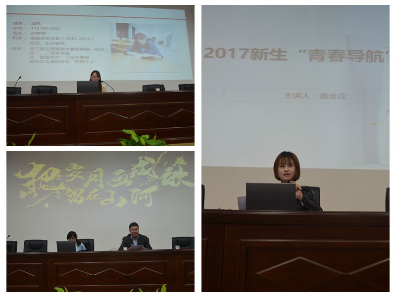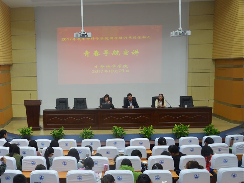 (本网讯 生科院 蒋婷婷)为进一步帮助新生转变角色、适应老员工活、树立正确理想与目标,引导员工成长成才,10月24日晚,公司团委举办“青春导航”优秀事迹报告会。邀请生科院2017级动物学专业硕士研究生胡玮,新传公司2014级广告学专业黄金花,美术公司2017级环境设计专业研究生袁畅作导航报告。公司2017级辅导员蒋婷婷及全体新生参加报告会。报告会由蒋婷婷主持。