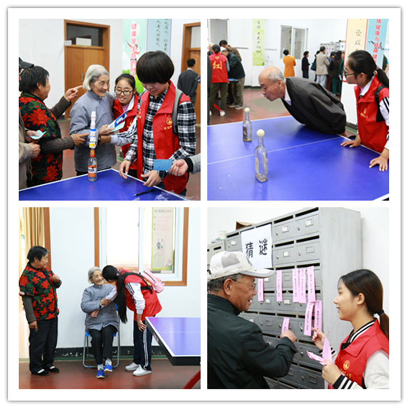 14时许活动正式开始,“红马甲”们分为三组陪同老教师们进行了“吹乒乓球”、“叠罗汉”、“猜谜”三种游戏,童心未泯的老教师们纷纷过来尝试,兴致盎然。猜谜游戏中,没有猜中谜底的老教师们不禁开始询问“红马甲”们正确答案,而猜中谜底的老教师,脸上挂满幸福的笑容。在游戏环节中,参与游戏的老教师们都领到了小奖品。老教师们相互鼓励,互致问候,说道“您这身体还健康的很呐!”。最后,“红马甲”们为每位老教师派发了精美的慰问品,表示祝福。 16时,活动在老教师们的欢声笑语中圆满结束。